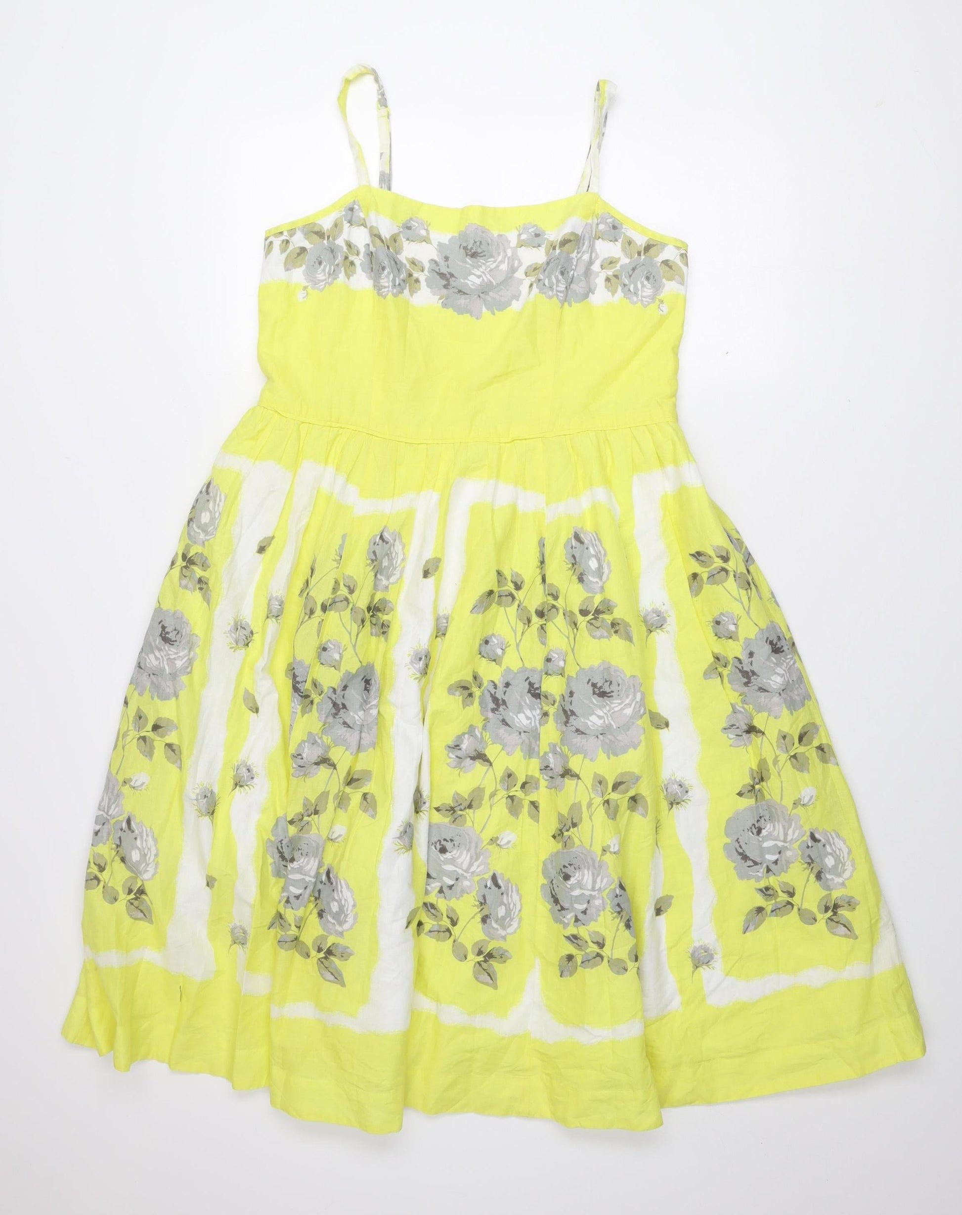 Monsoon Women's Yellow Floral Fit & Flare Dress Size 14