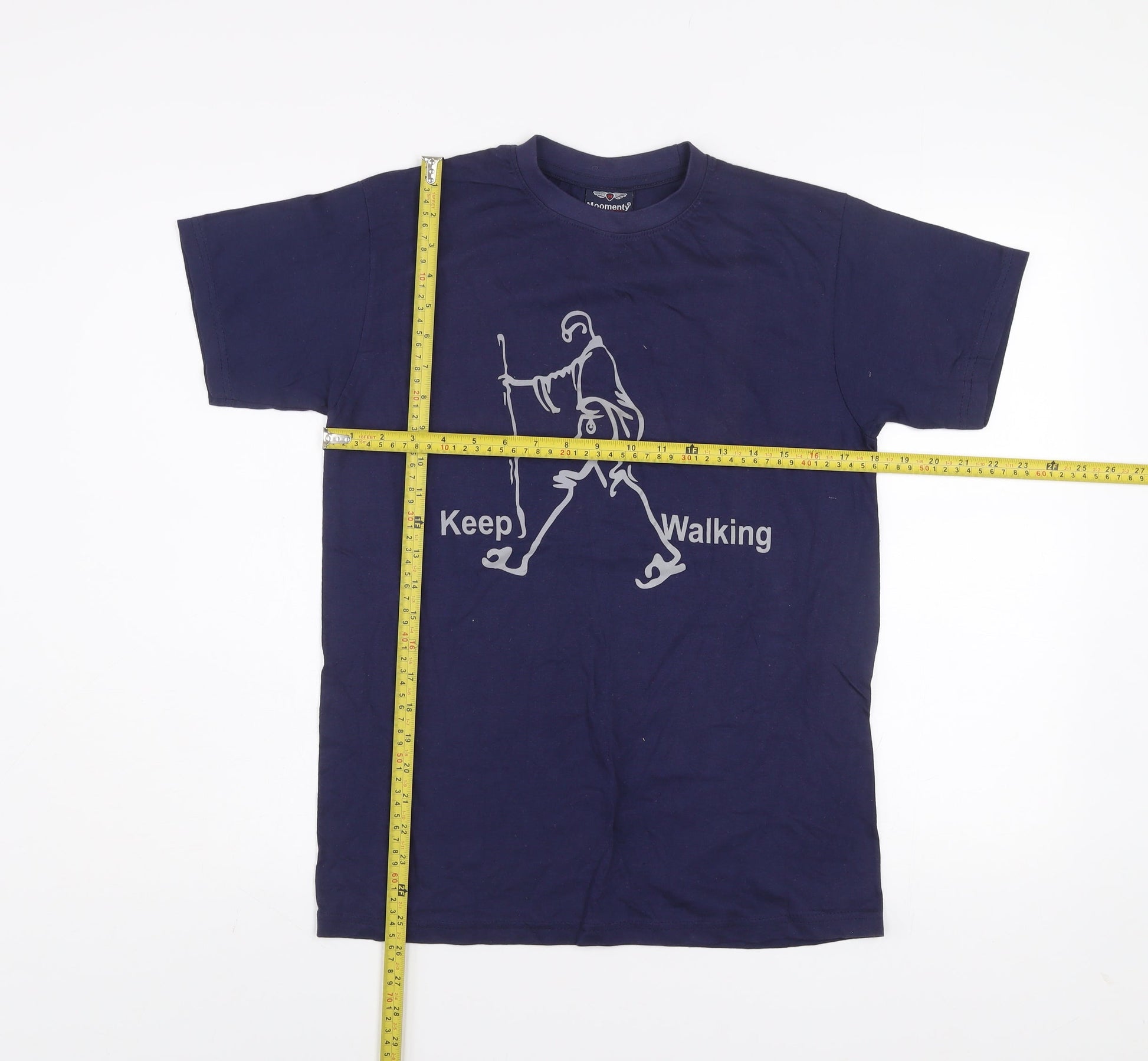 Moomeny Plus Men's Blue Keep Walking Cotton Graphic T-Shirt Size S