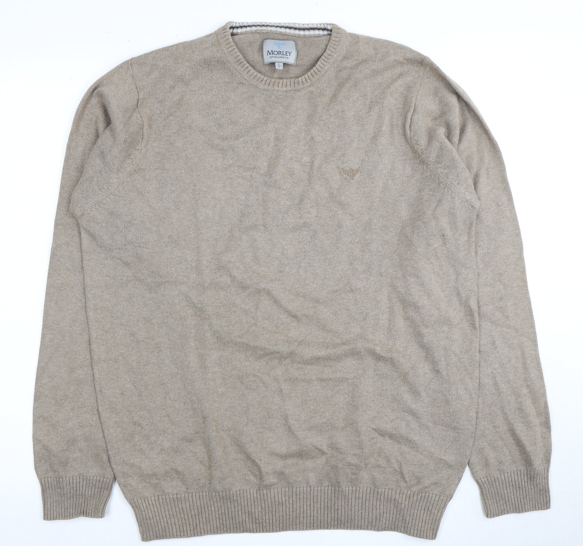 Morley Men's Beige Cotton Pullover Jumper, Size L