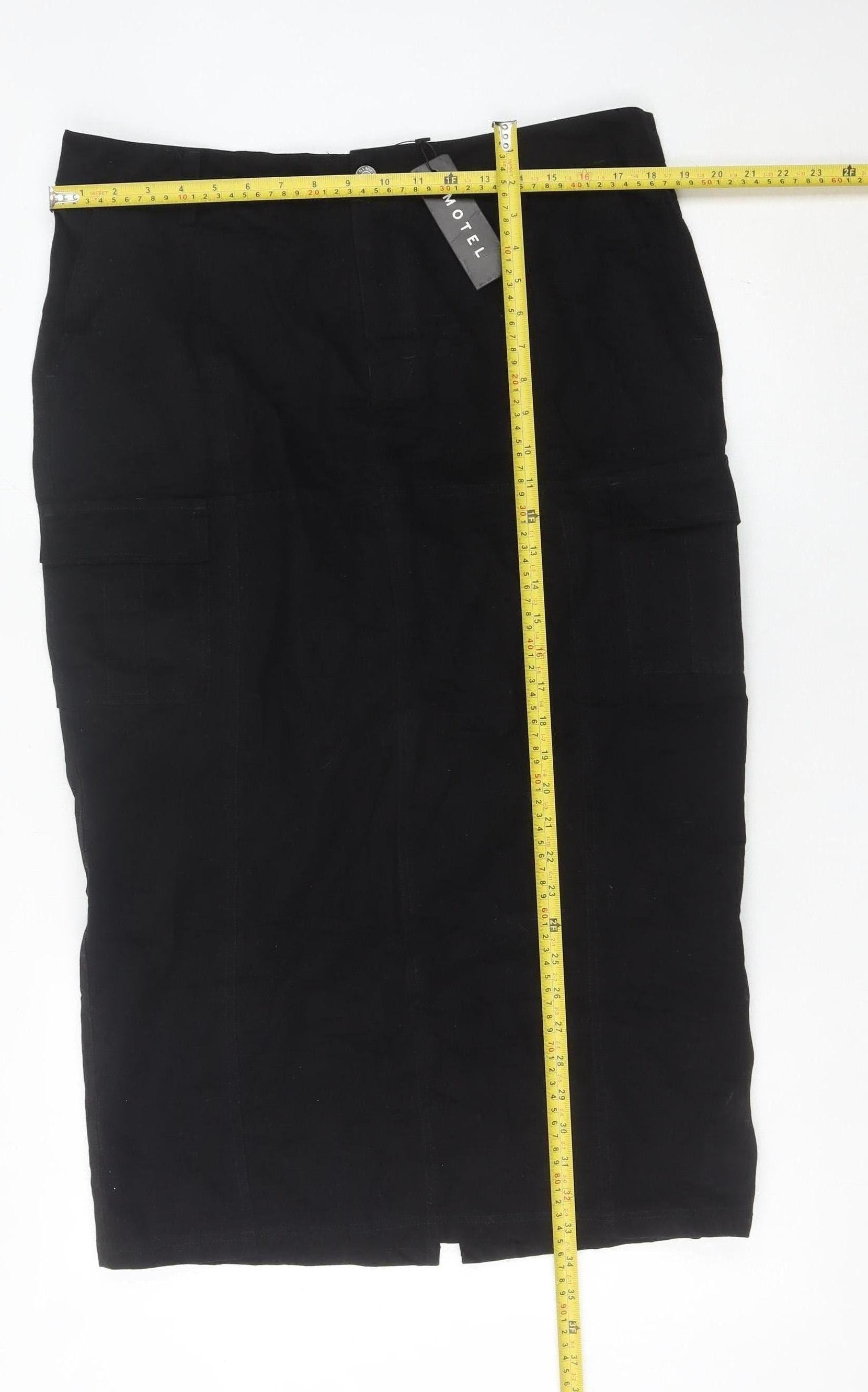 Motel Women’s Black Midi Cargo Skirt L Cotton Pockets Casual