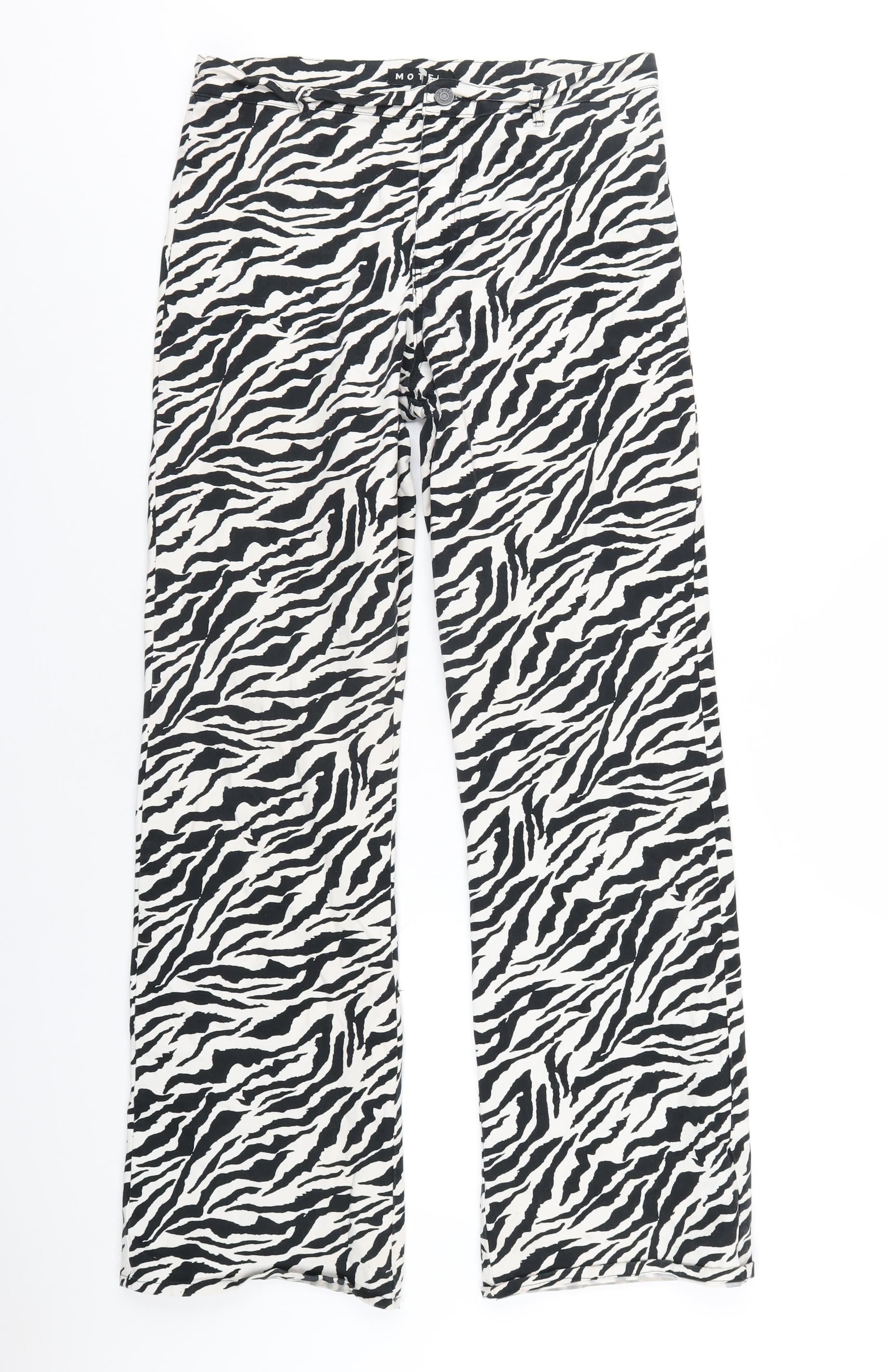 Motel Womens Black Animal Print Cotton Straight Jeans Size L L32 in Regular Zip - Zebra Print
