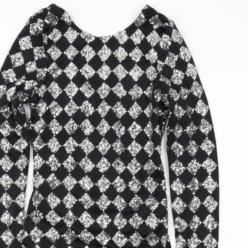 Motel Womens Black Argyle/Diamond Polyester Bodycon Size S Round Neck Pullover