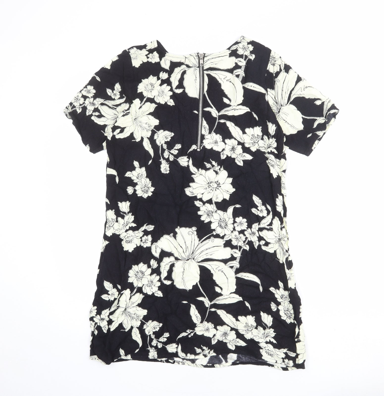 Motel Womens Black Floral Viscose Mini Size S Round Neck Zip