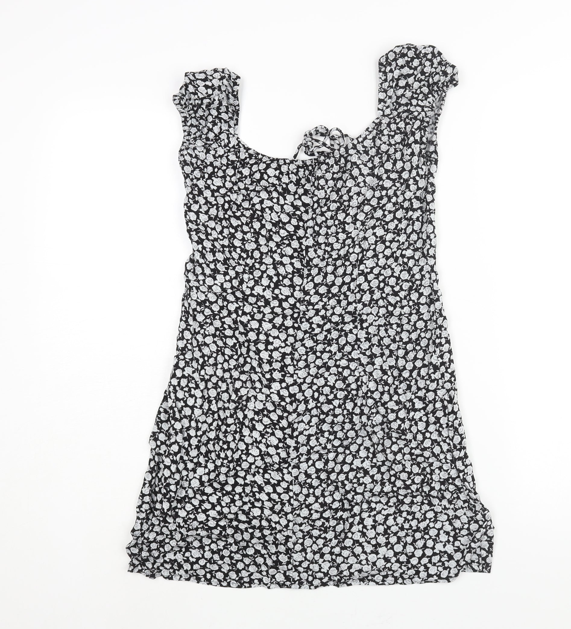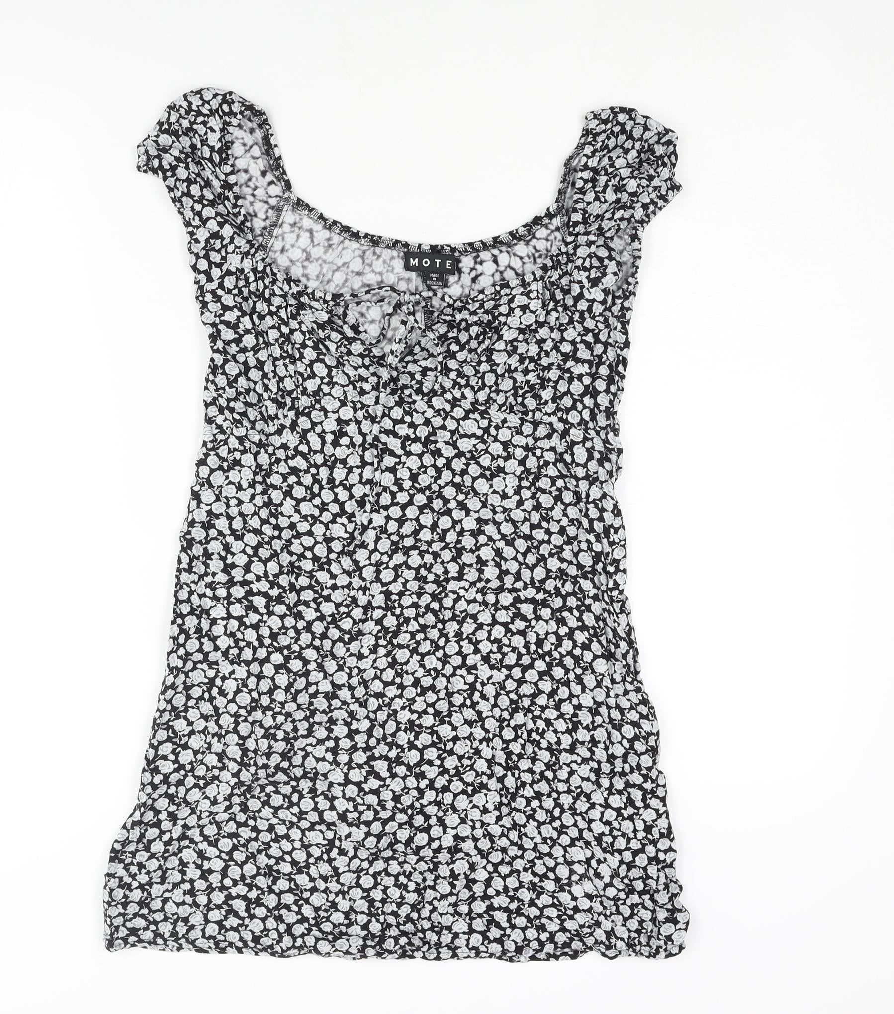 Motel Womens Black Floral Viscose Mini Size S Scoop Neck Tie