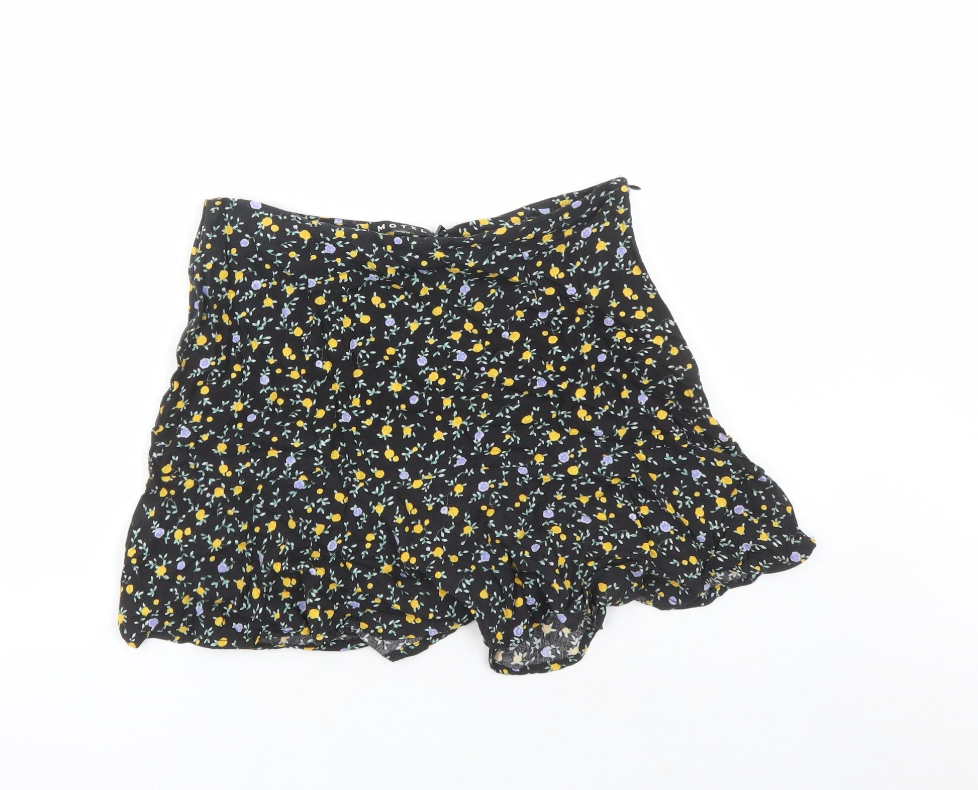Motel Womens Black Floral Viscose Mini Skirt Size M Zip
