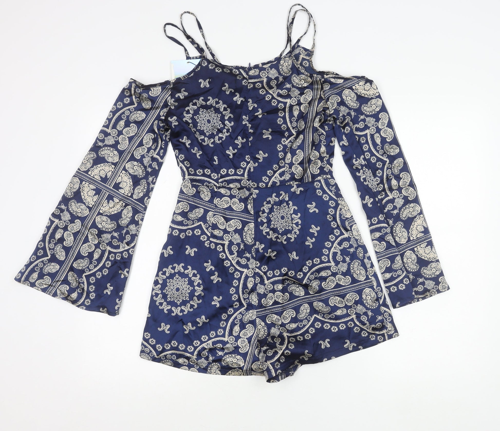 Motel Womens Blue Paisley Cold Shoulder Long Sleeve Playsuit Size 6