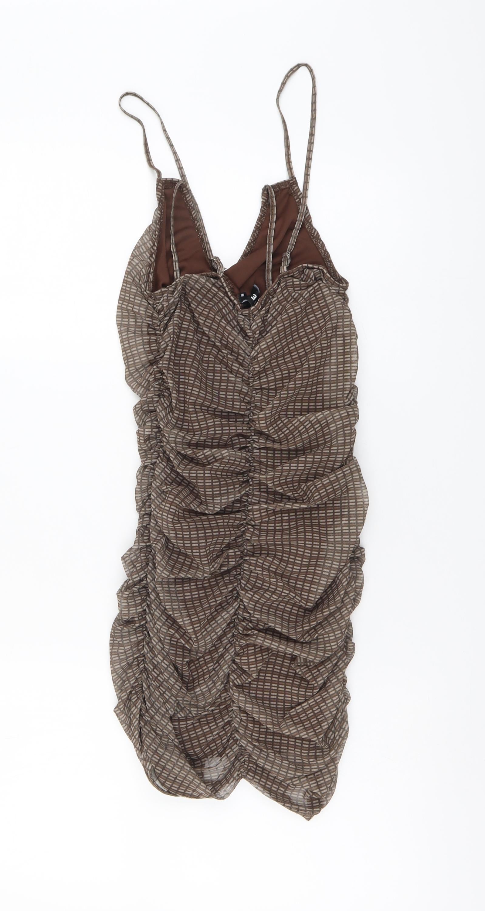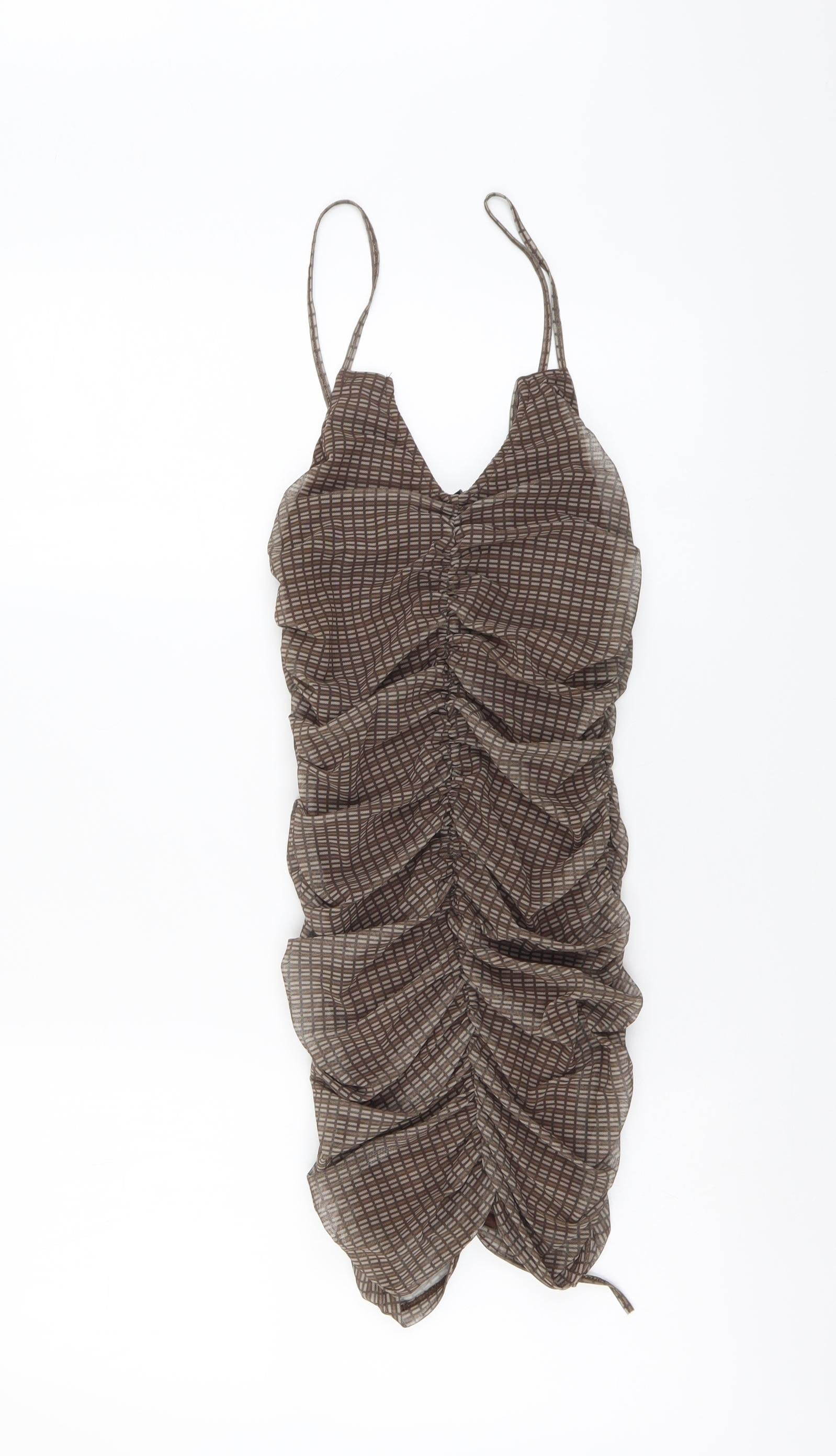 Motel Womens Brown Geometric Polyester Mini Size S V-Neck Pullover