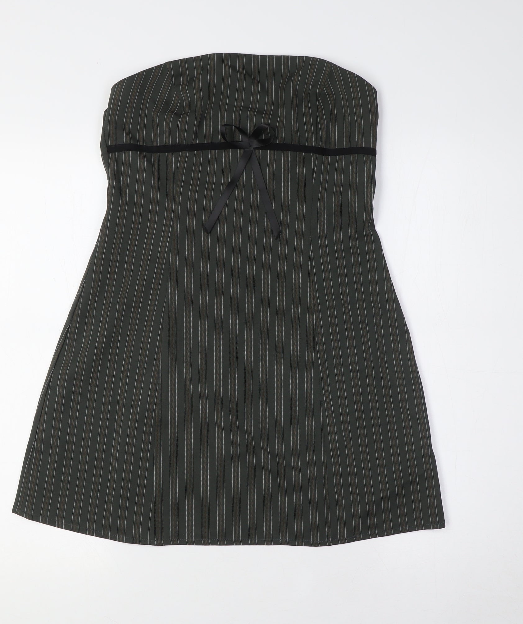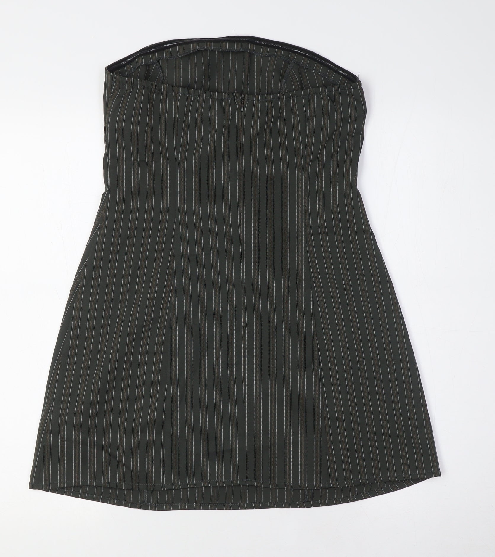 Motel Womens Brown Striped Polyester A-Line Size S Off the Shoulder Zip - High Empire
