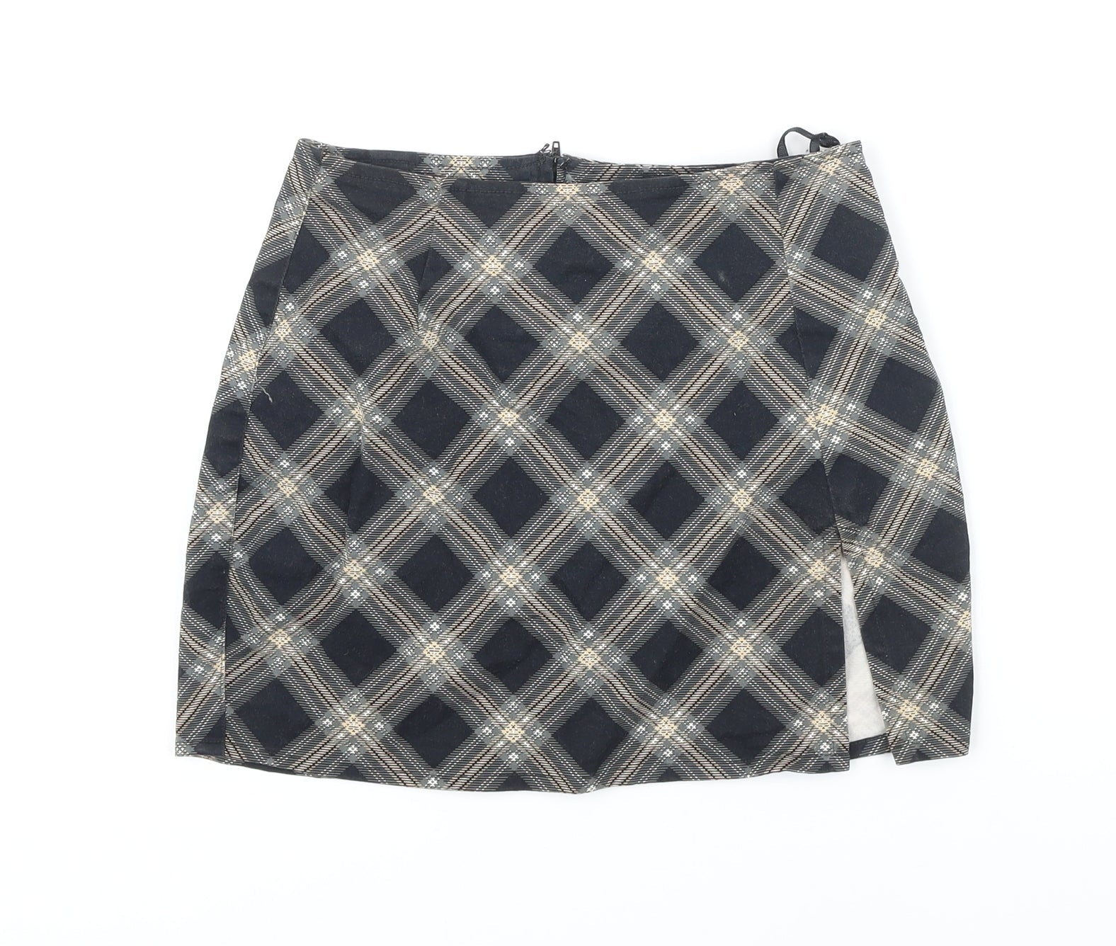 Motel Womens Ivory Check Cotton Mini Skirt Size XS Zip