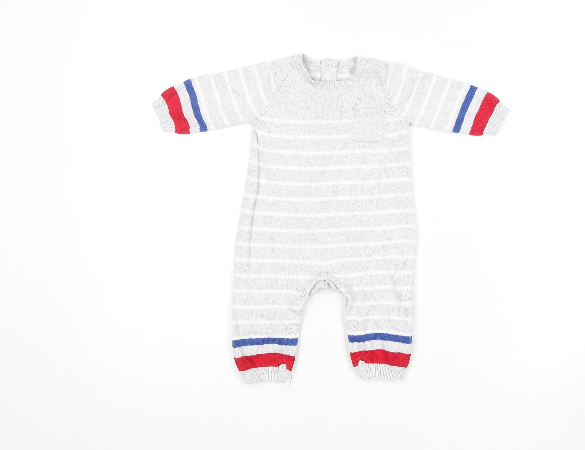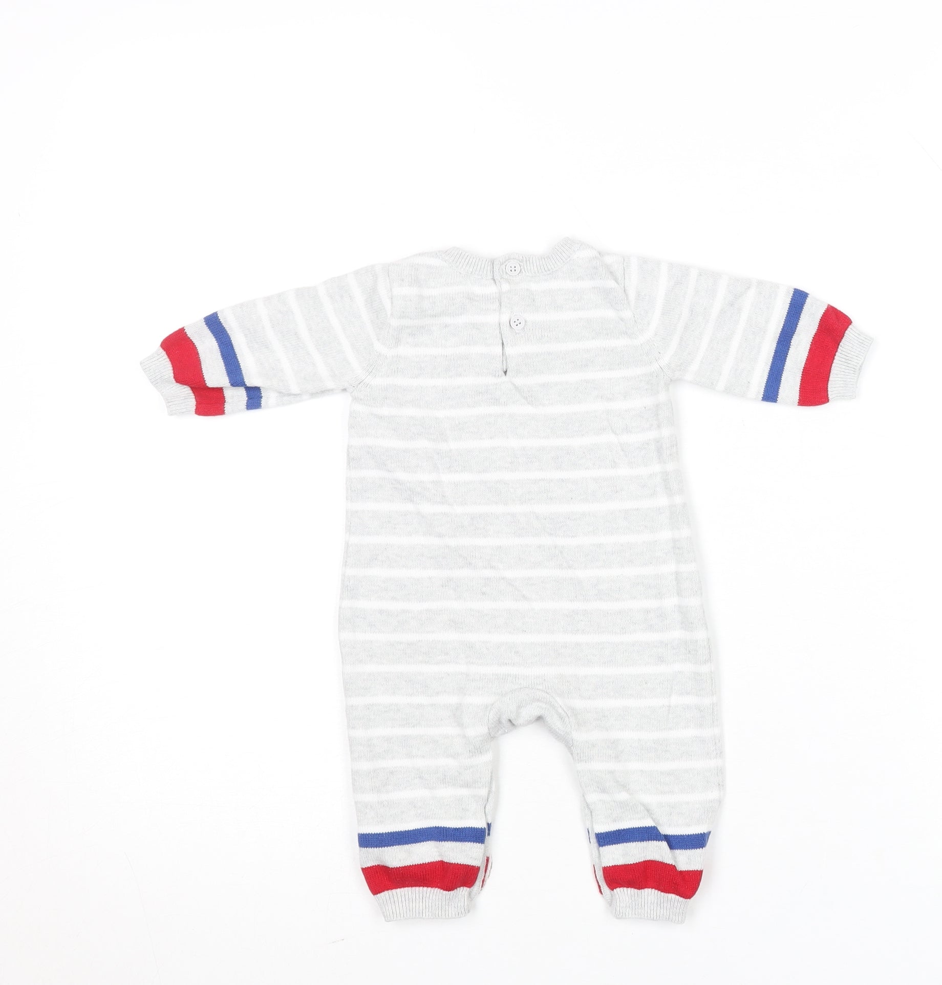 Mothercare Unisex Grey Striped Knit Babygrow 0-3 Months