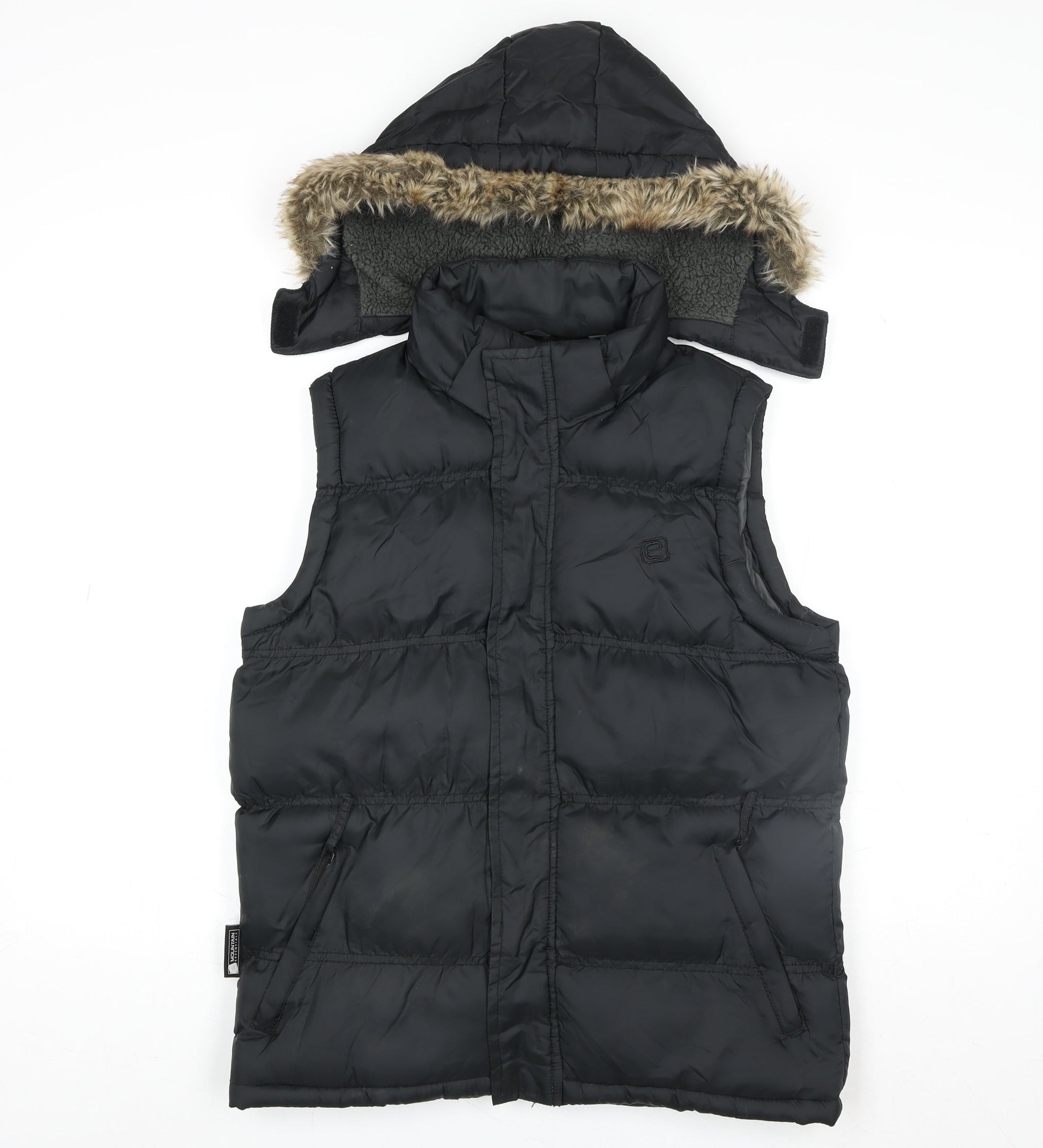 Mountain Essentials Girls Black Puffer Gilet Hooded 13 Years Nylon