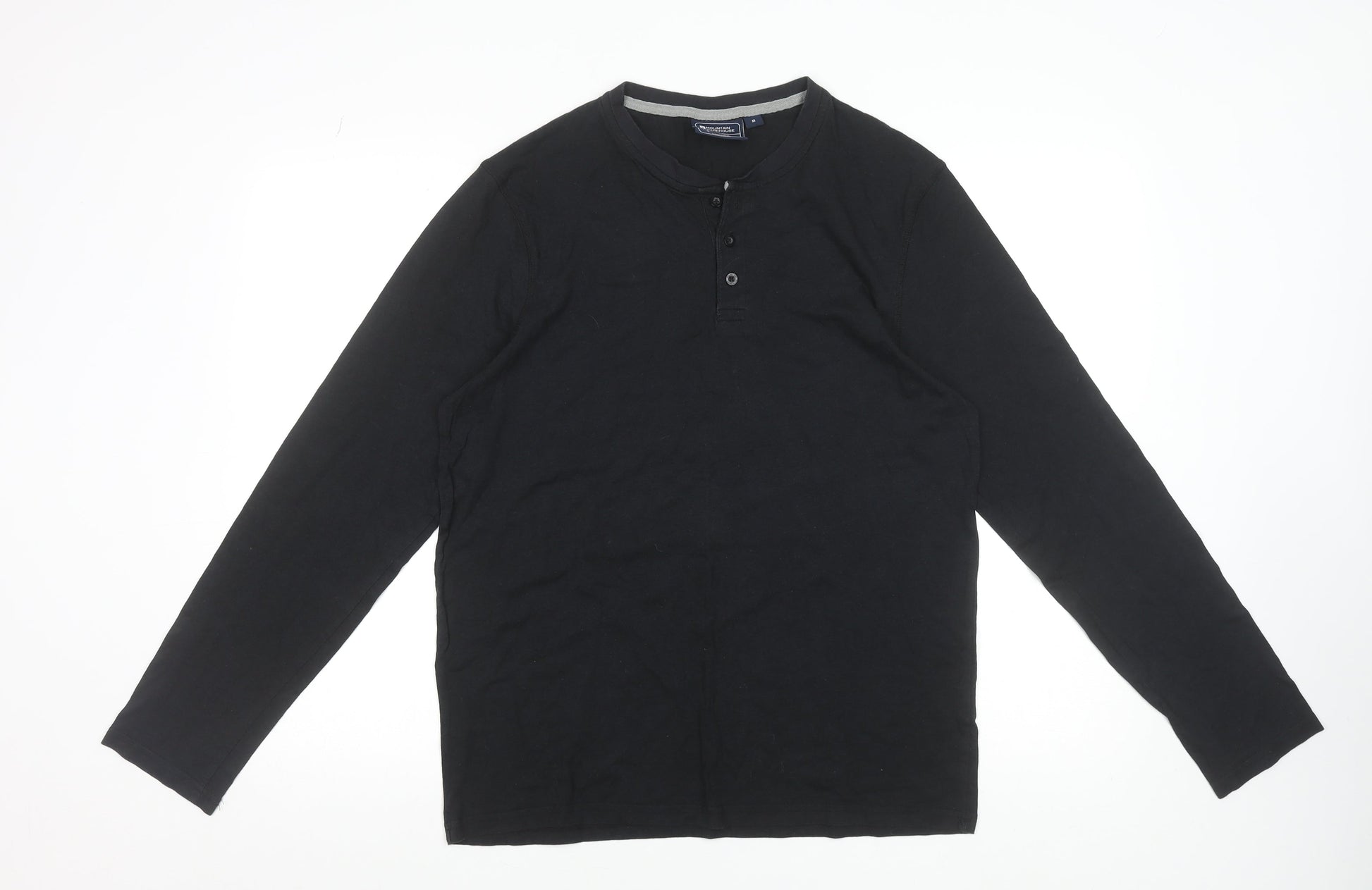Mountain Warehouse Men's Black Bamboo Henley Long Sleeve T-Shirt M