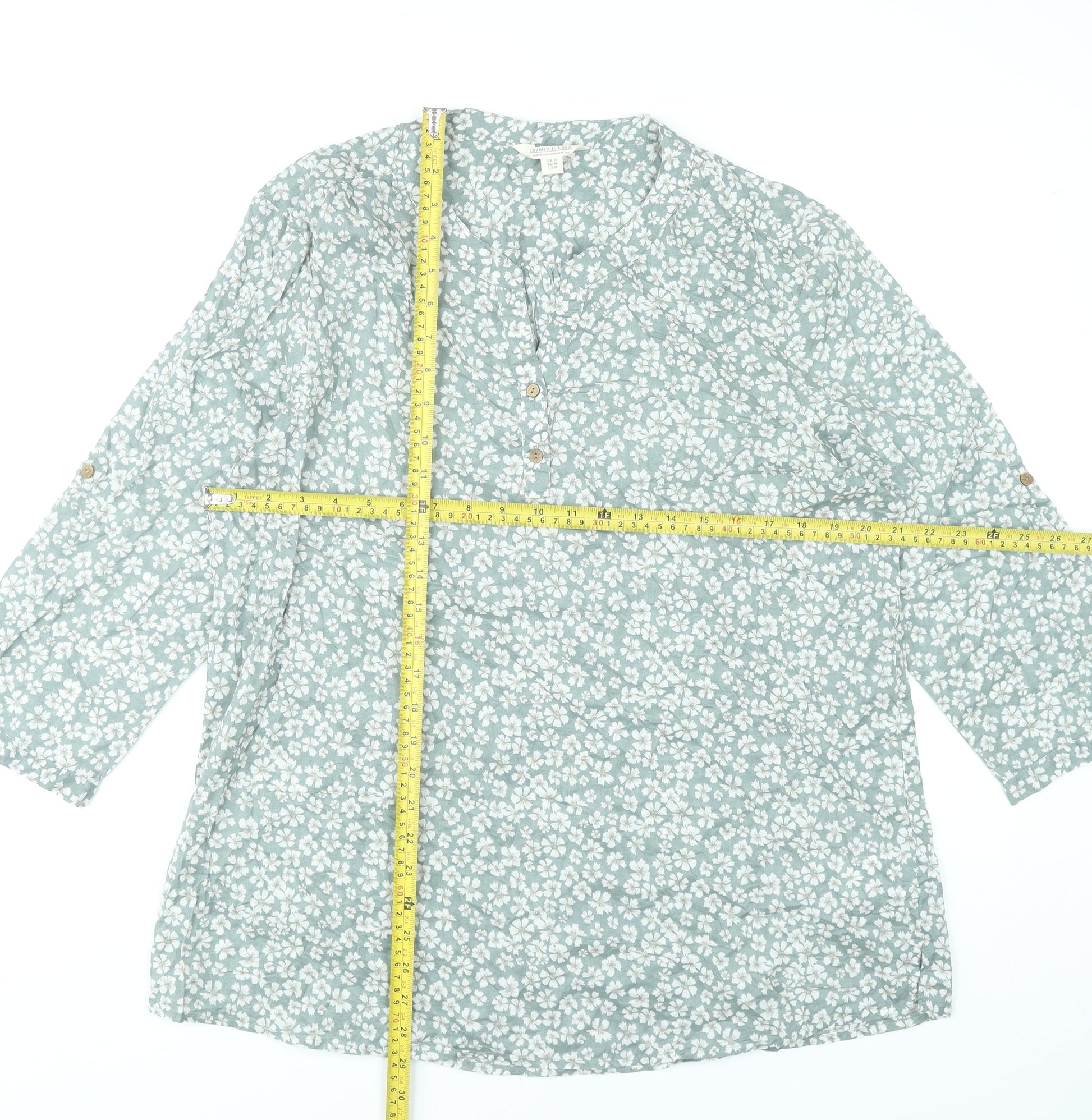 Mountain Warehouse Women Green Floral Cotton Tunic Blouse UK 20