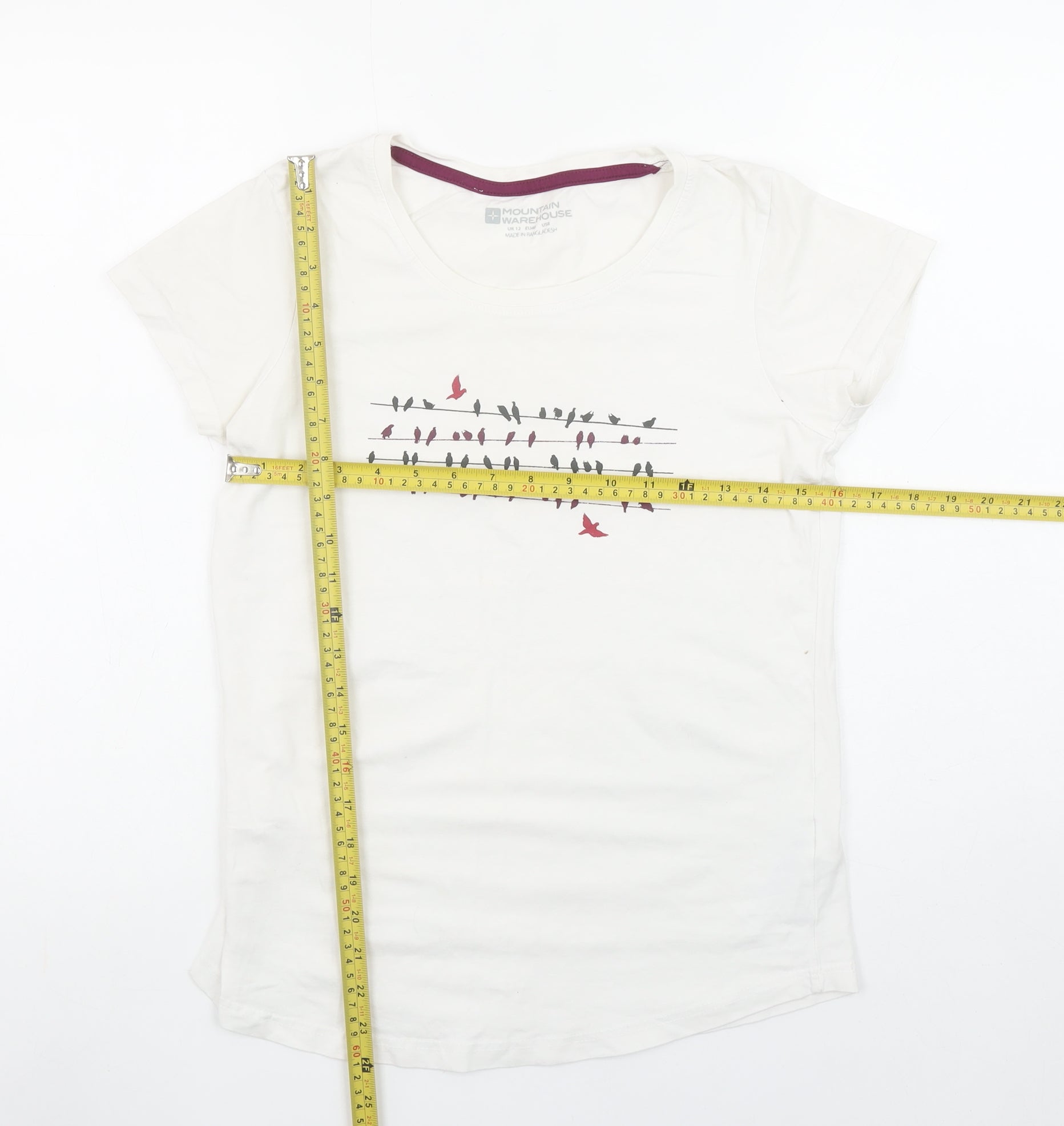 Mountain Warehouse Women’s White Bird Print Cotton T-Shirt Size 12
