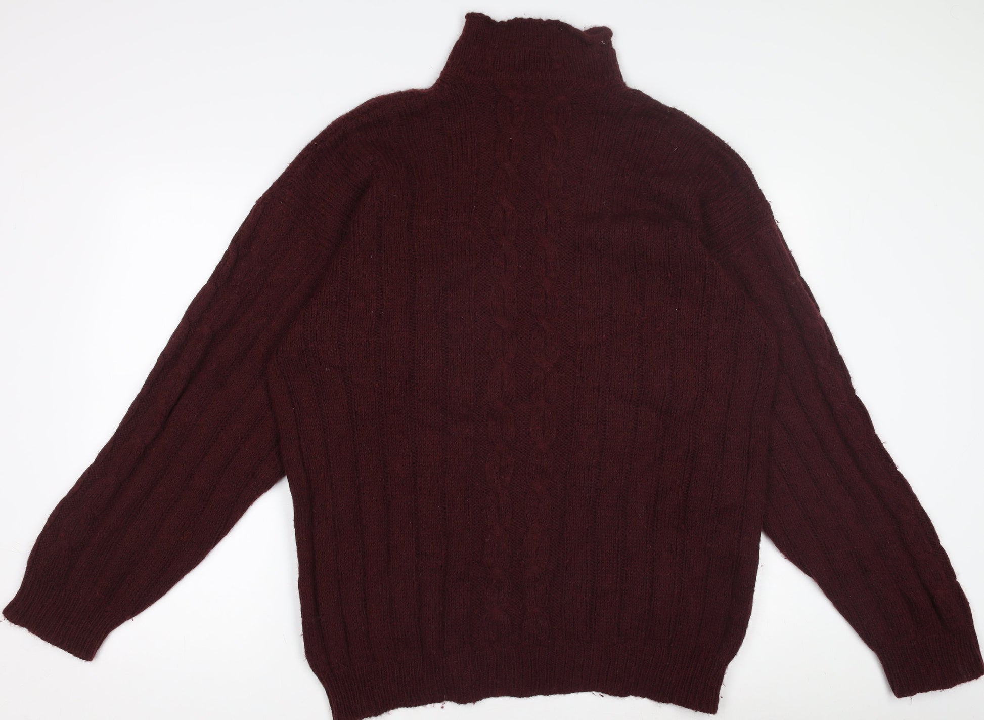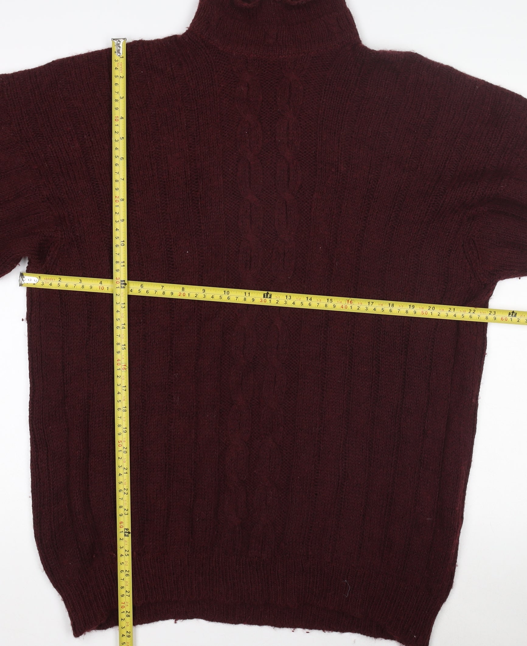Mulberry Men’s Red Cable-Knit Roll Neck Wool Camel Jumper M