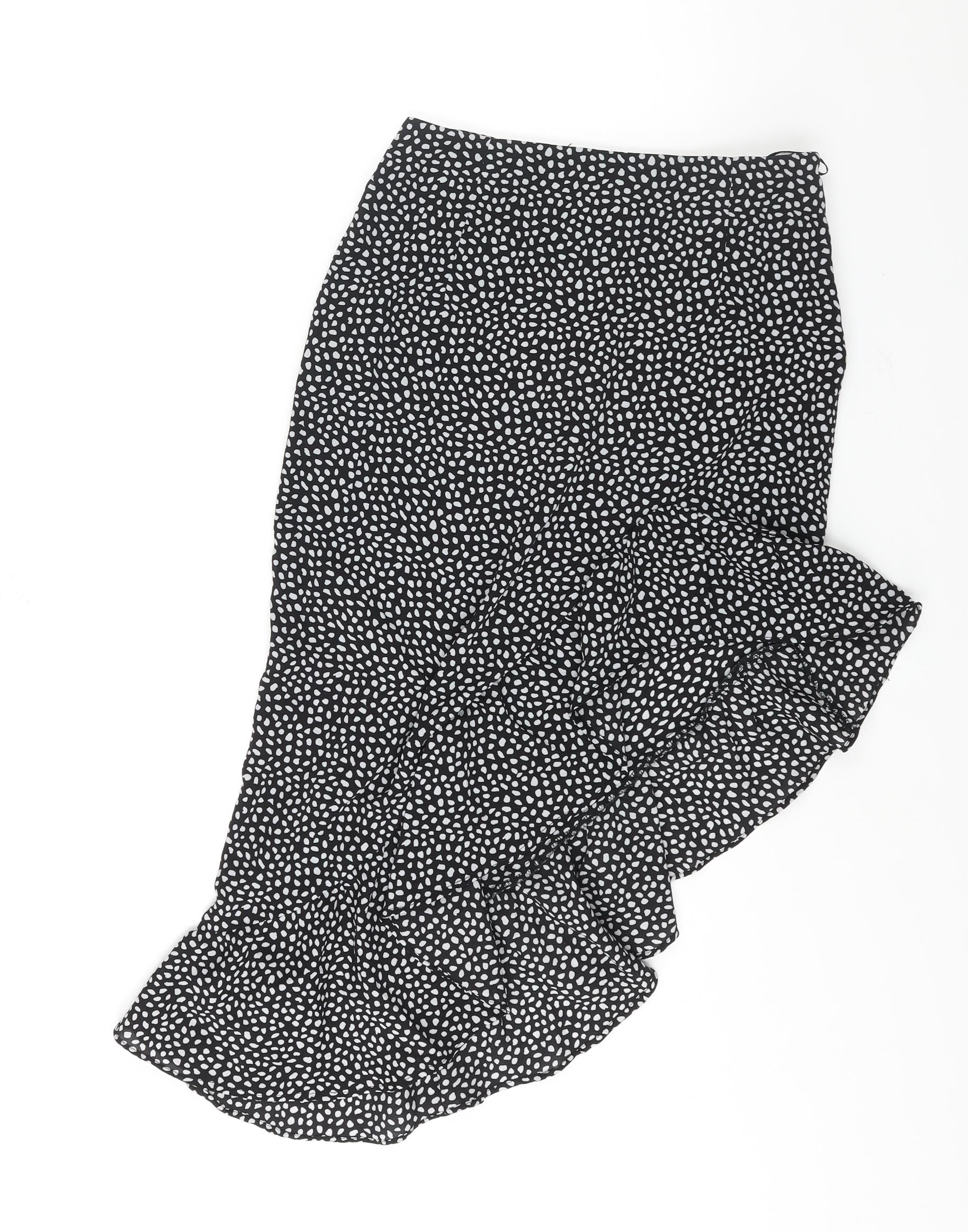 NaaNaa Womens Black Polka Dot Polyester A-Line Skirt Size 8 Zip - Asymmetric Hem Frill