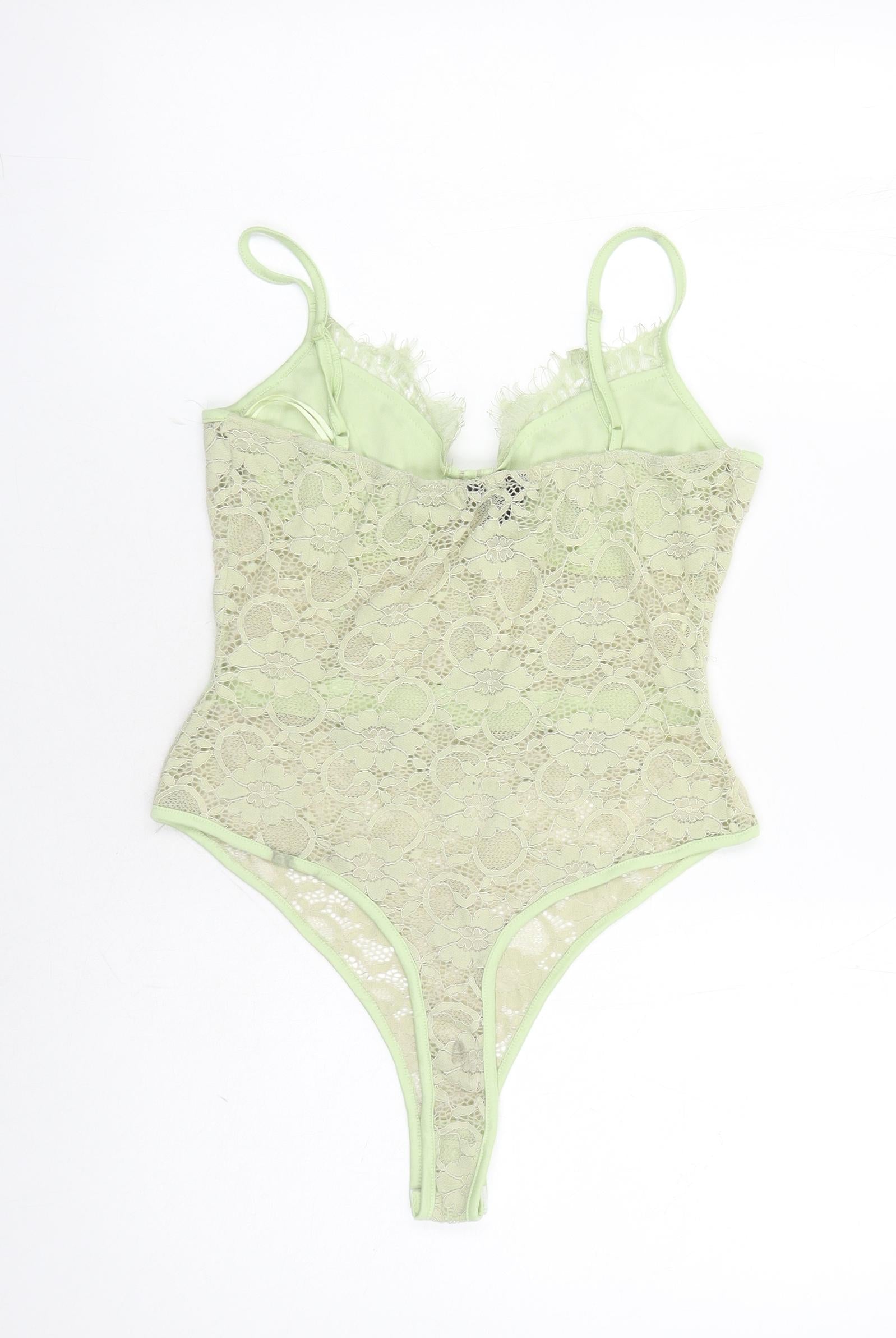 Naanaa Womens Green Floral Polyester Bodysuit One-Piece Size 10 Snap