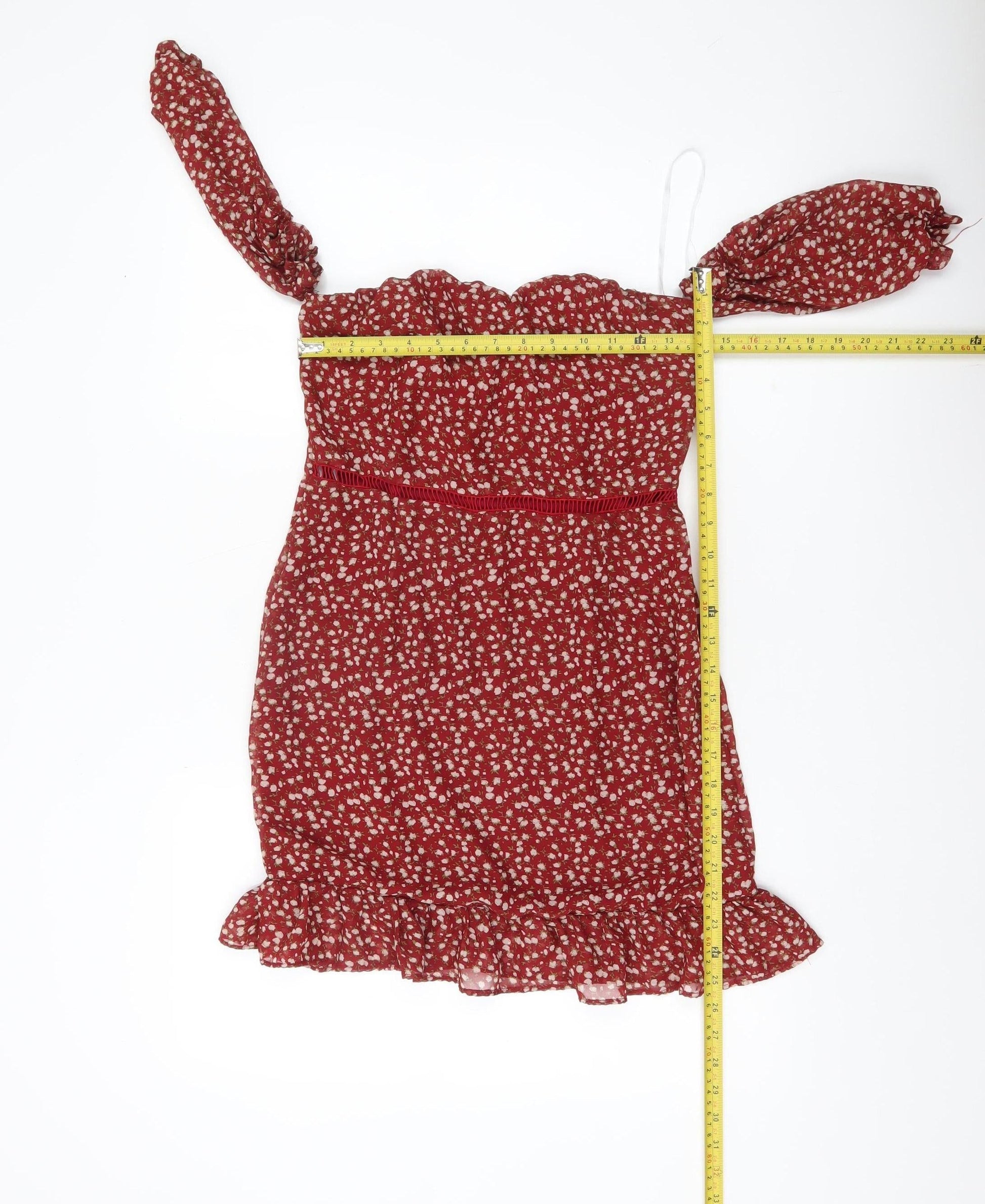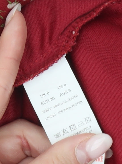 NAANAA Women's Red Floral Puff Sleeve Bodycon Dress UK 8
