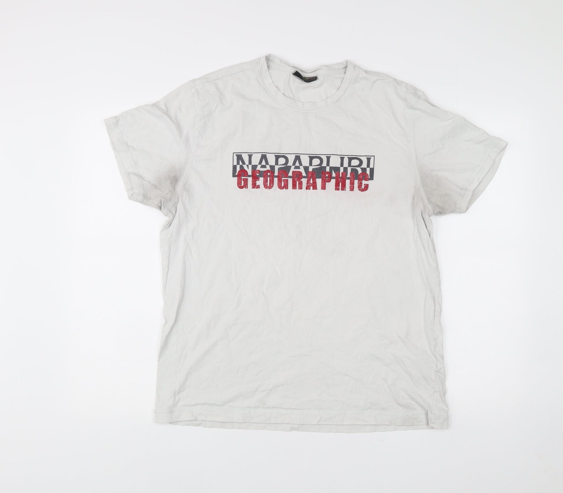 Napapijri Men’s White XL Graphic Print Crew Neck Cotton T-Shirt