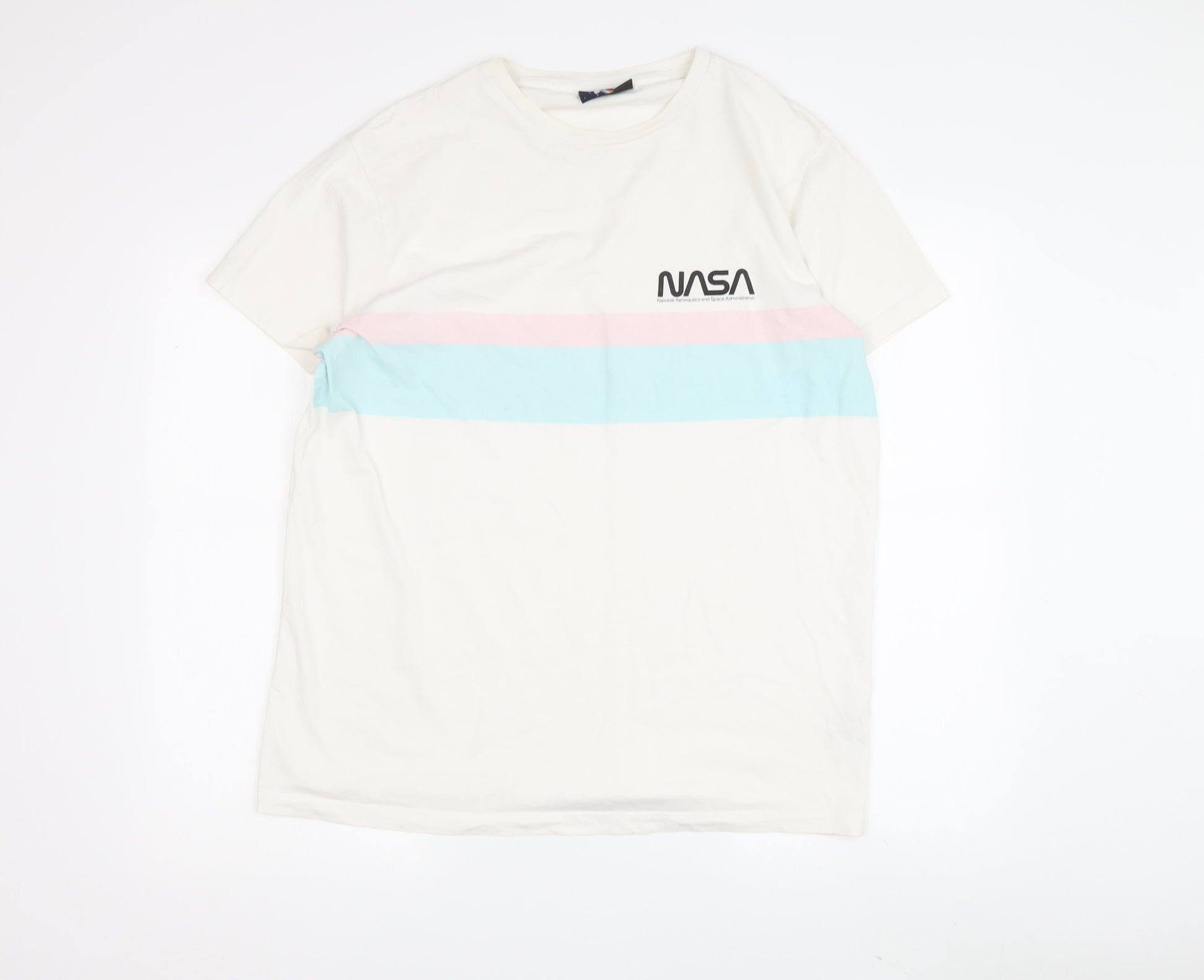 NASA Men's White L T-Shirt, Space Theme, Graphic Logo