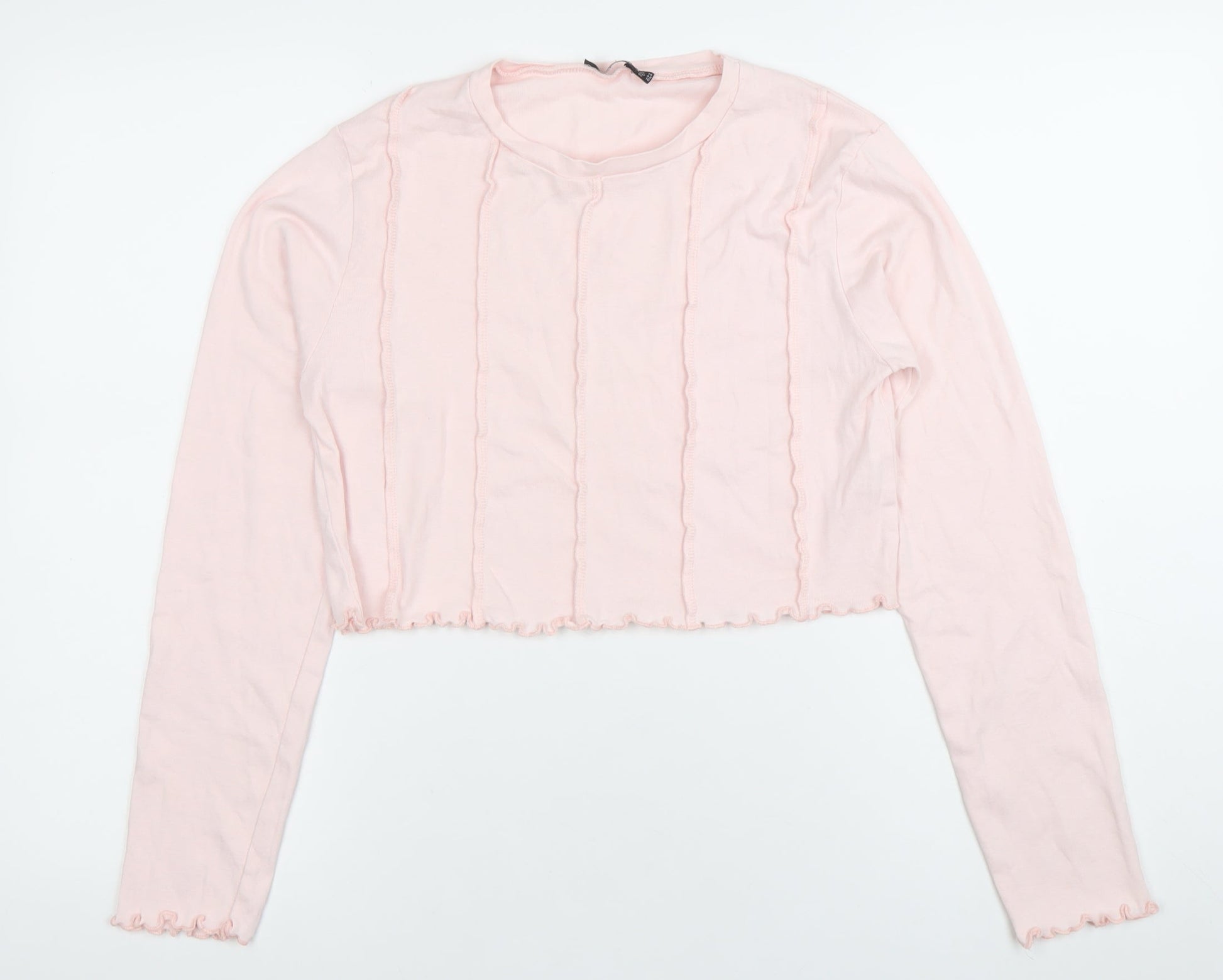 Nasty Gal Women Pink Cropped Long Sleeve Cotton T-Shirt Size 14