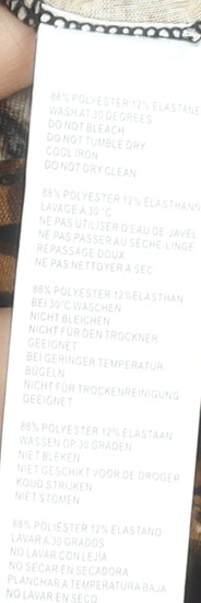 - Material Breakdown: 88% Polyester 12% Elastane