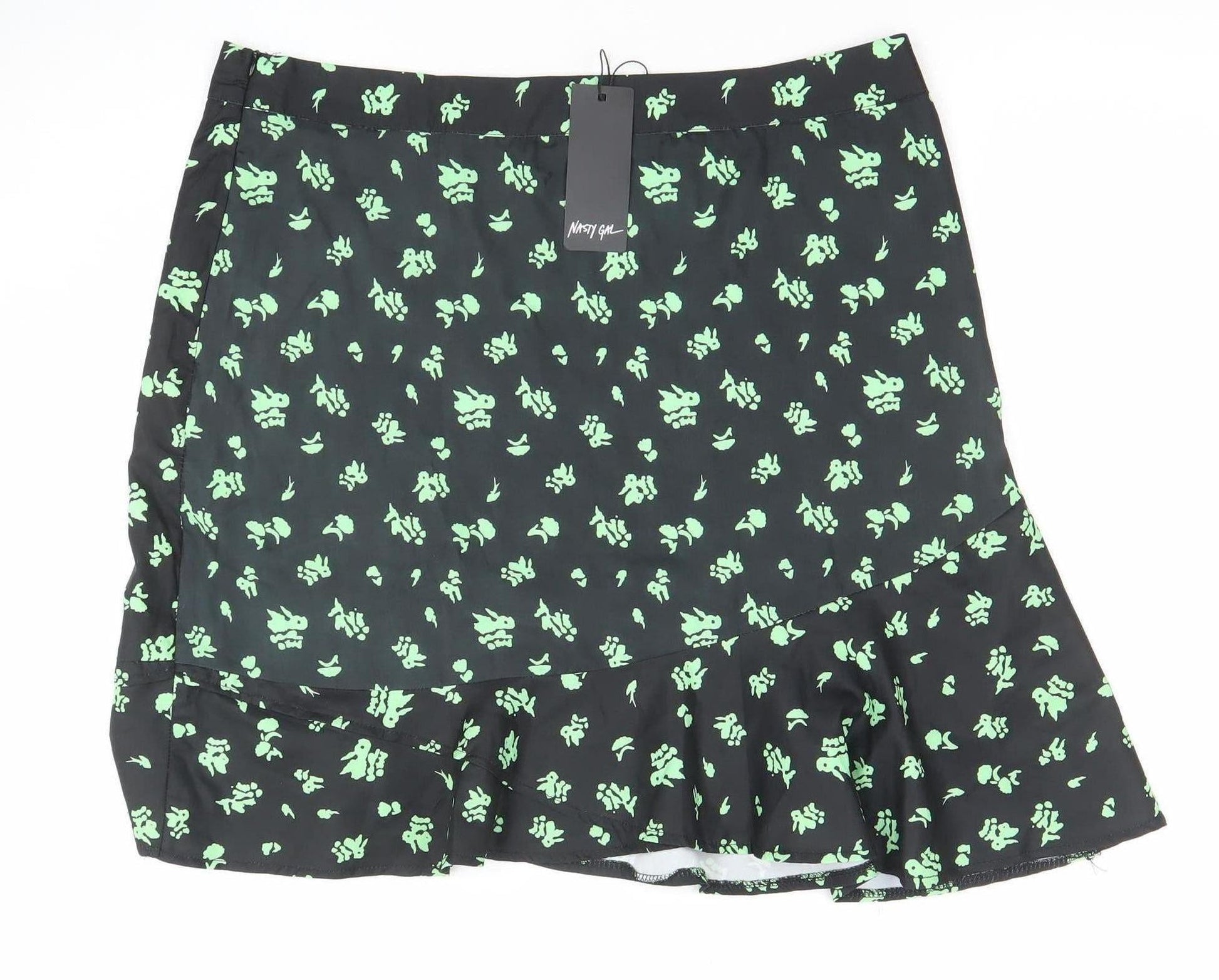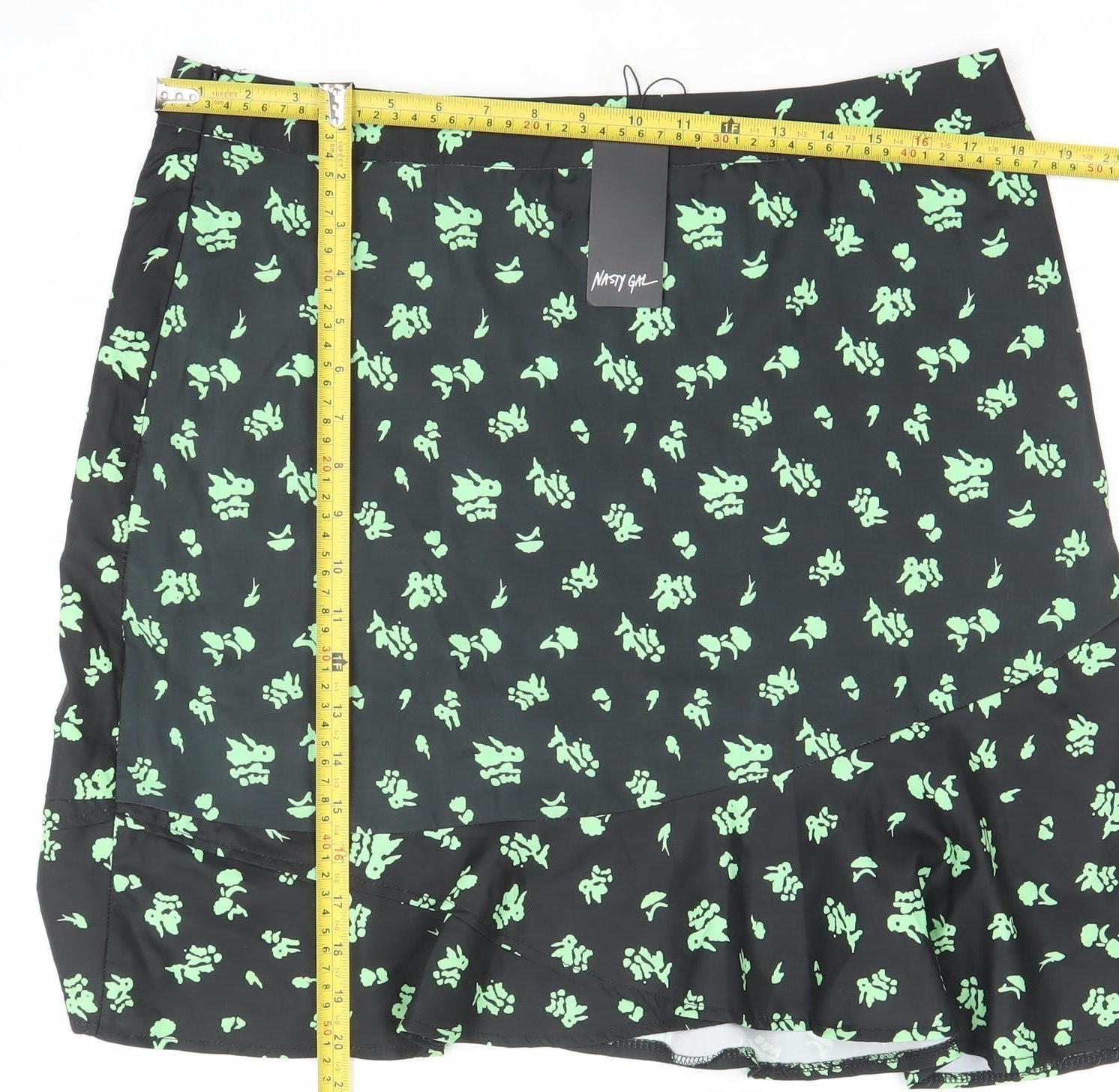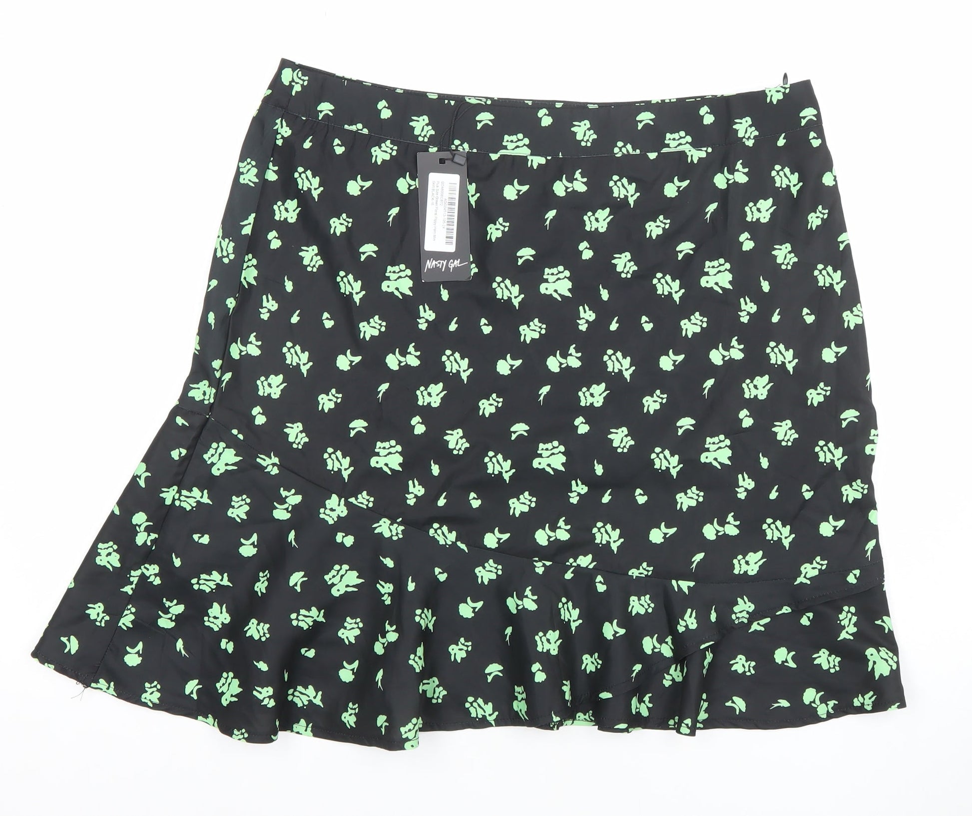 Nasty Gal Women's Black Floral Flare Short Skirt Size 16