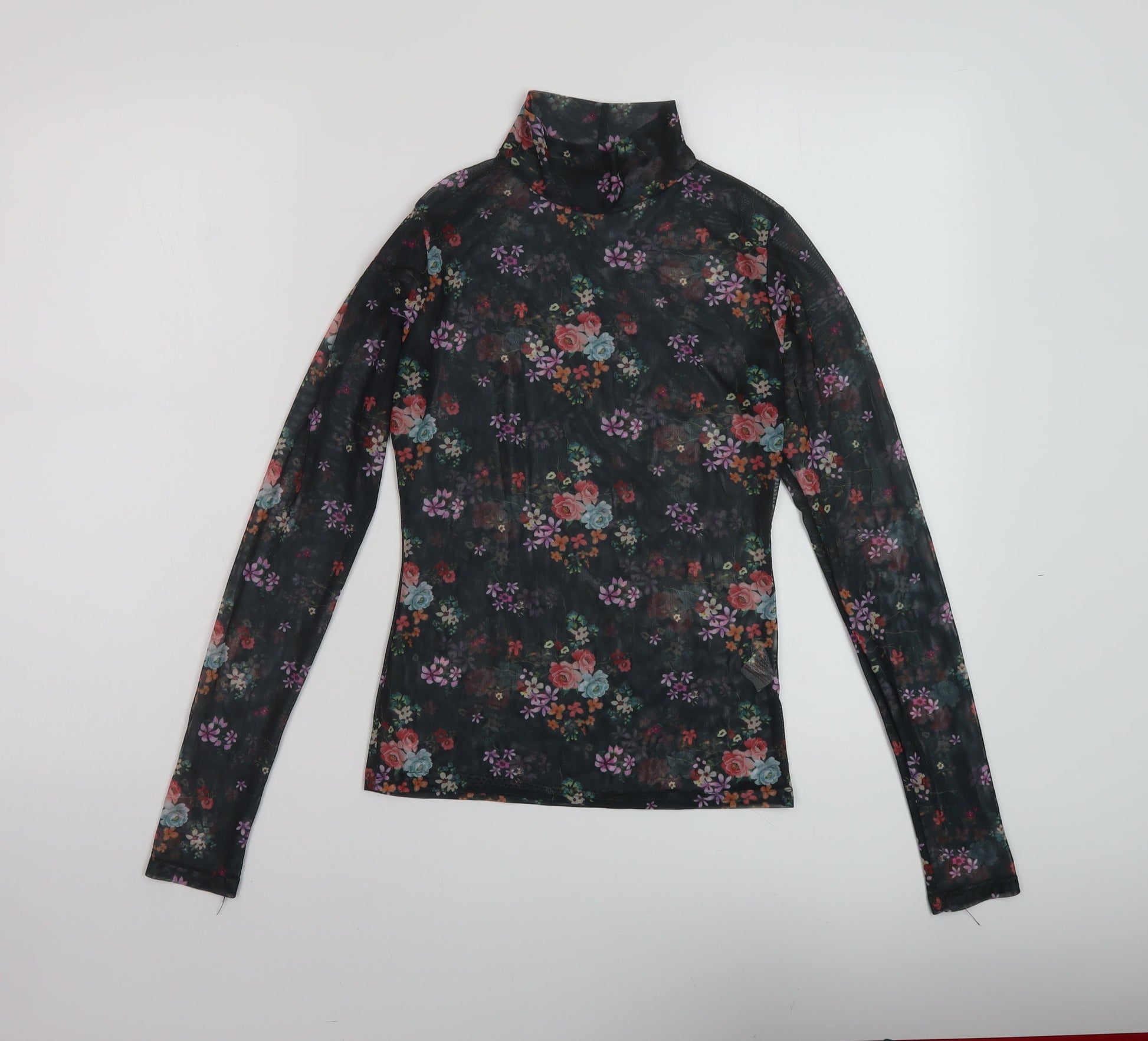 Nasty Gal Womens Black Floral Polyester Basic Blouse Size 6 Mock Neck