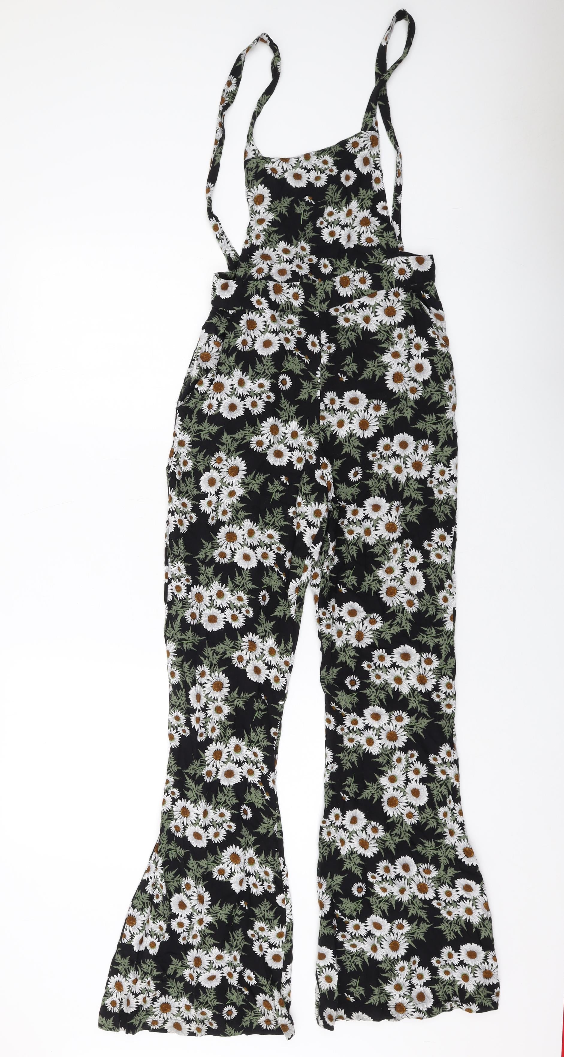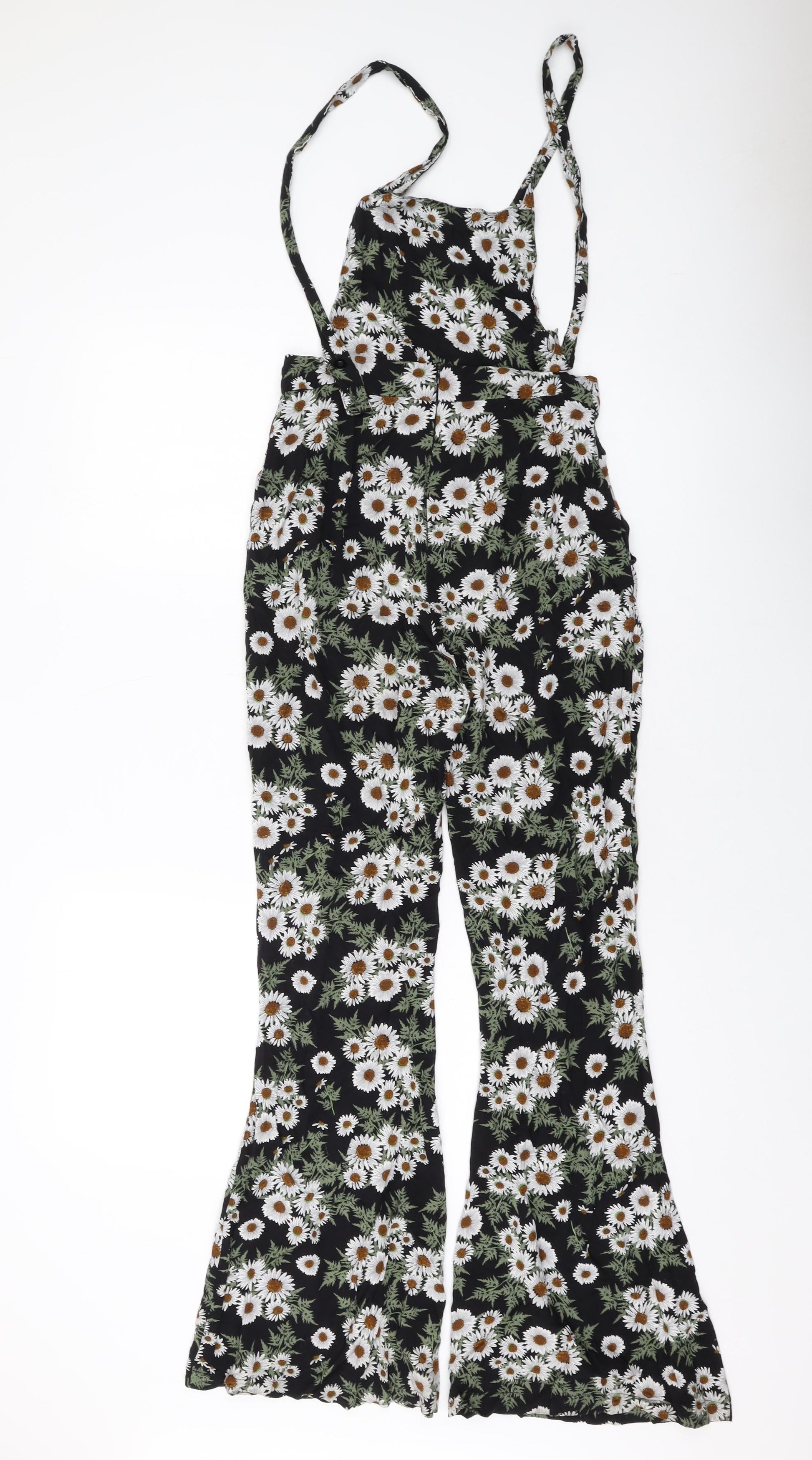 Nasty Gal Womens Black Floral Viscose Dungaree One-Piece Size 6 Button