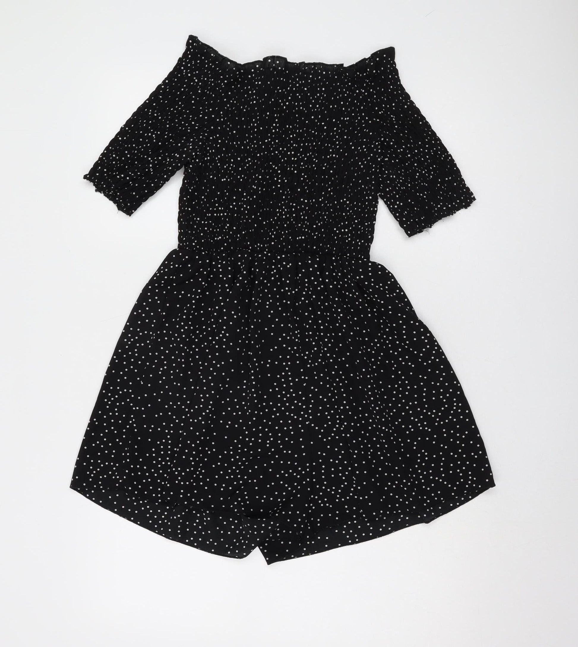 Nasty Gal Women's Black Polka Dot Off Shoulder Playsuit - Size 12