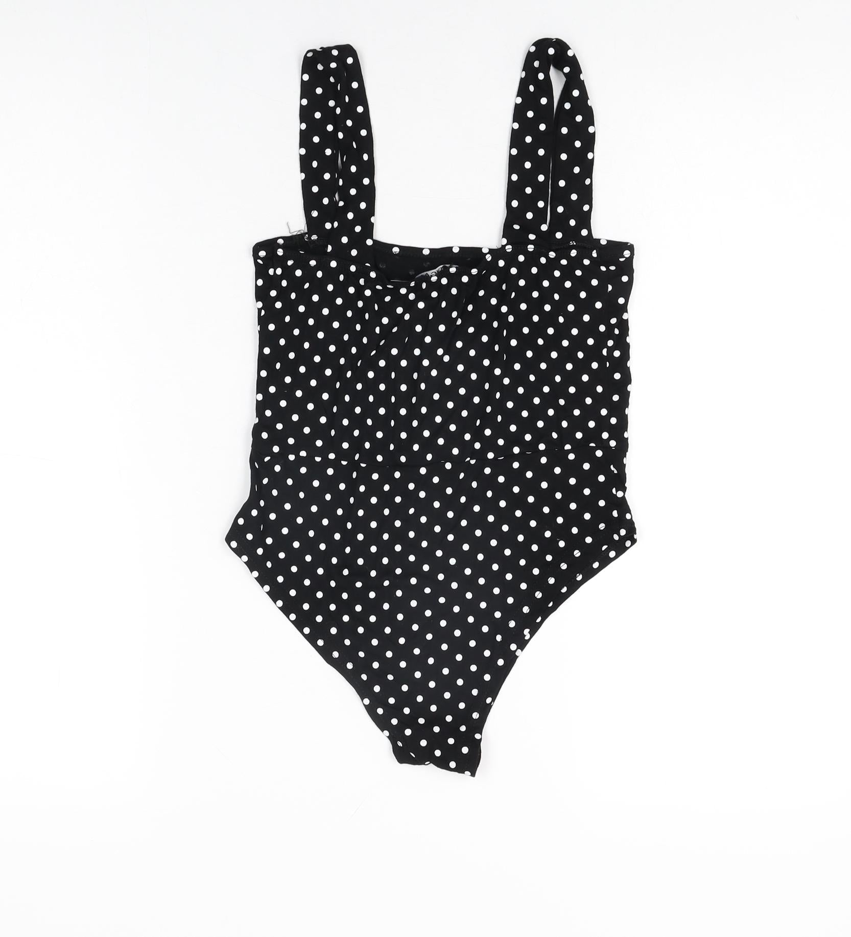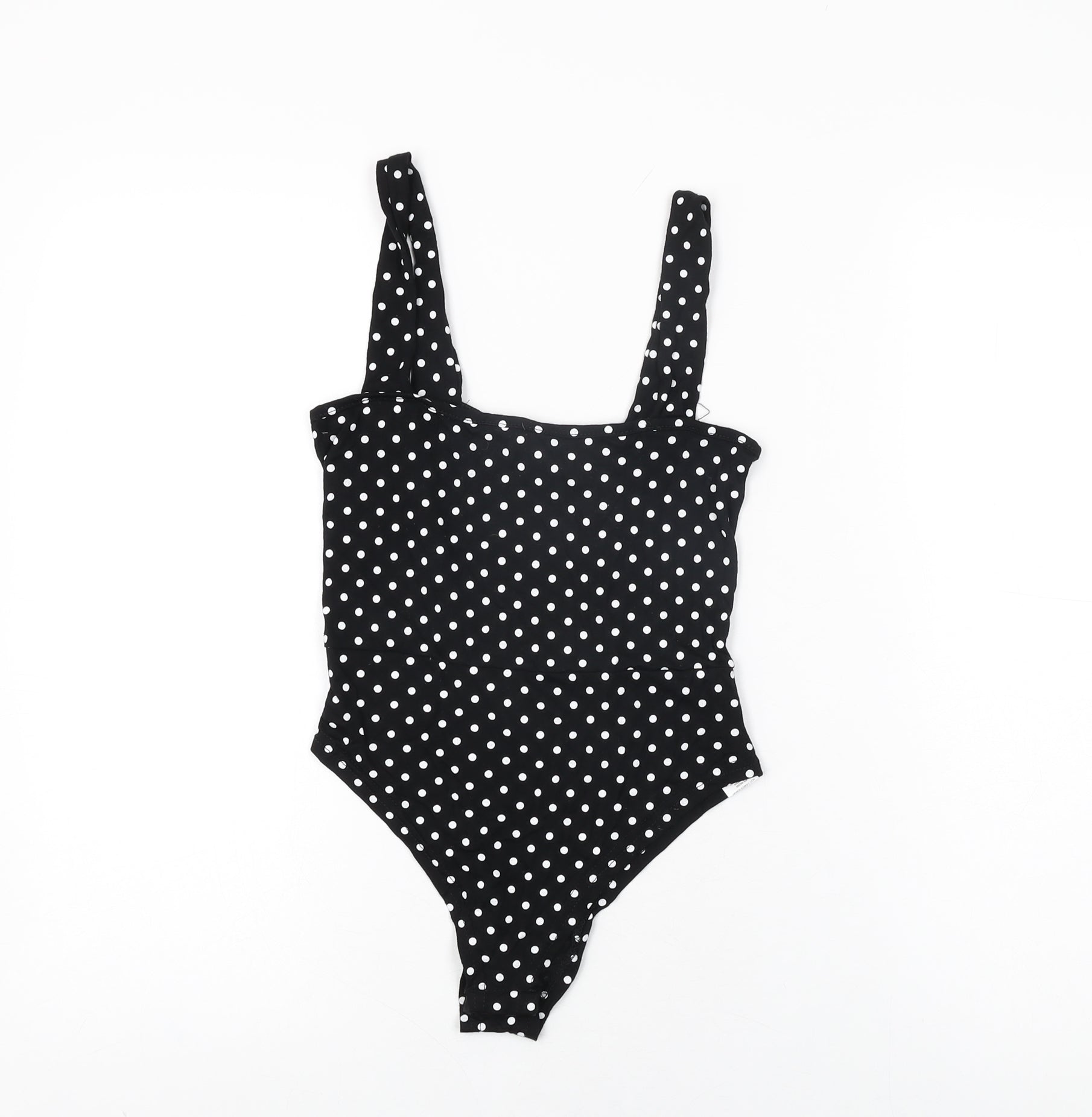 Nasty Gal Womens Black Polka Dot Viscose Bodysuit One-Piece Size 8 Snap