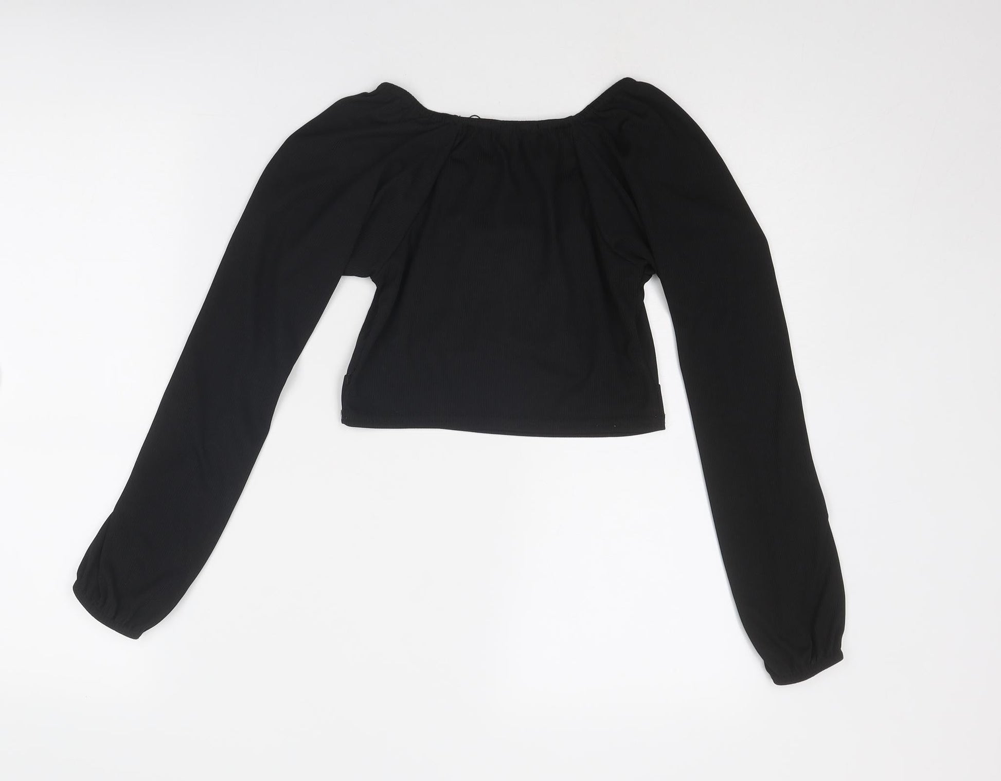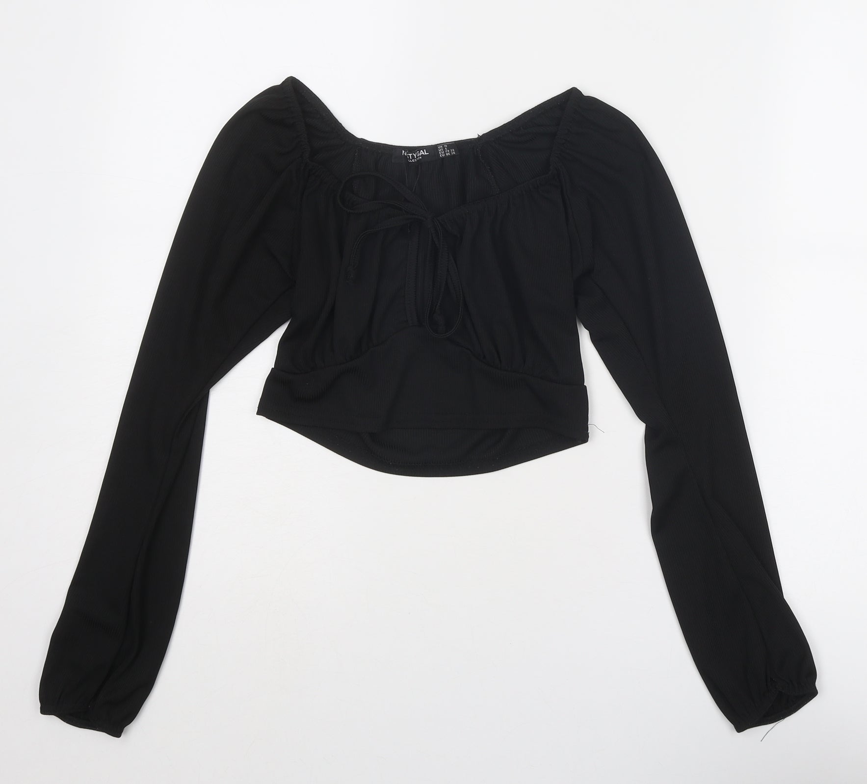 Nasty Gal Womens Black Polyester Basic T-Shirt Size 10 Round Neck