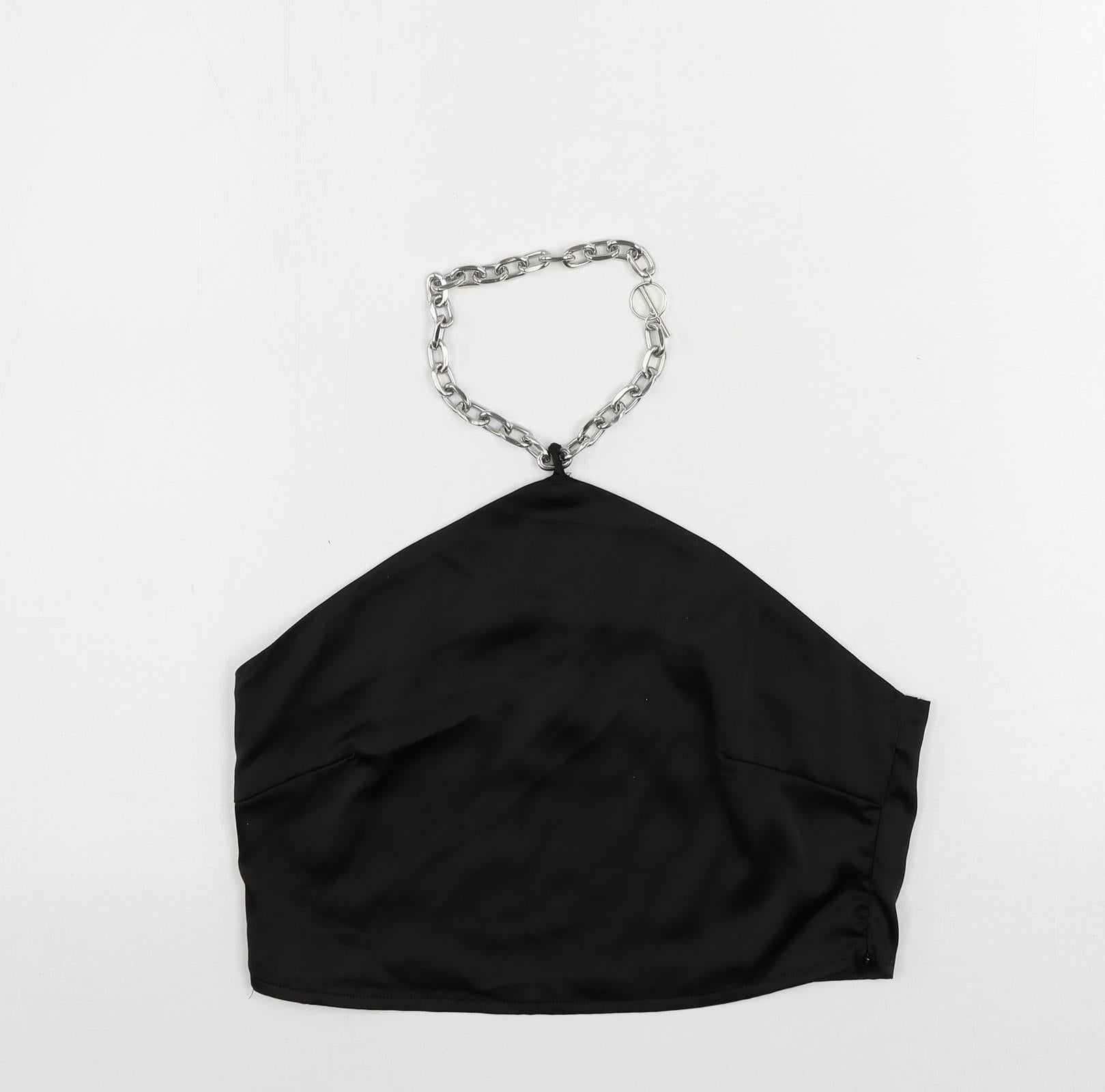 Nasty Gal Womens Black Polyester Cropped Blouse Size 10 Halter - Chain Detail