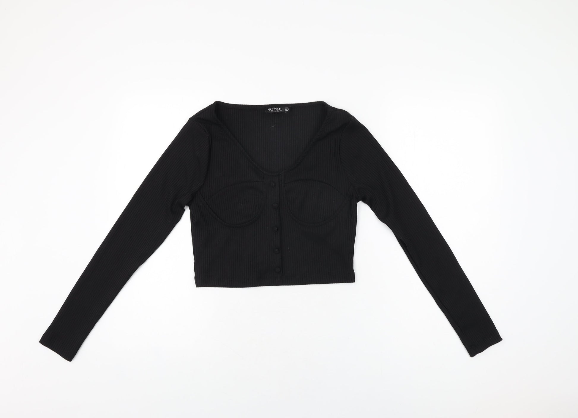 Nasty Gal Womens Black Polyester Cropped T-Shirt Size 8 Scoop Neck