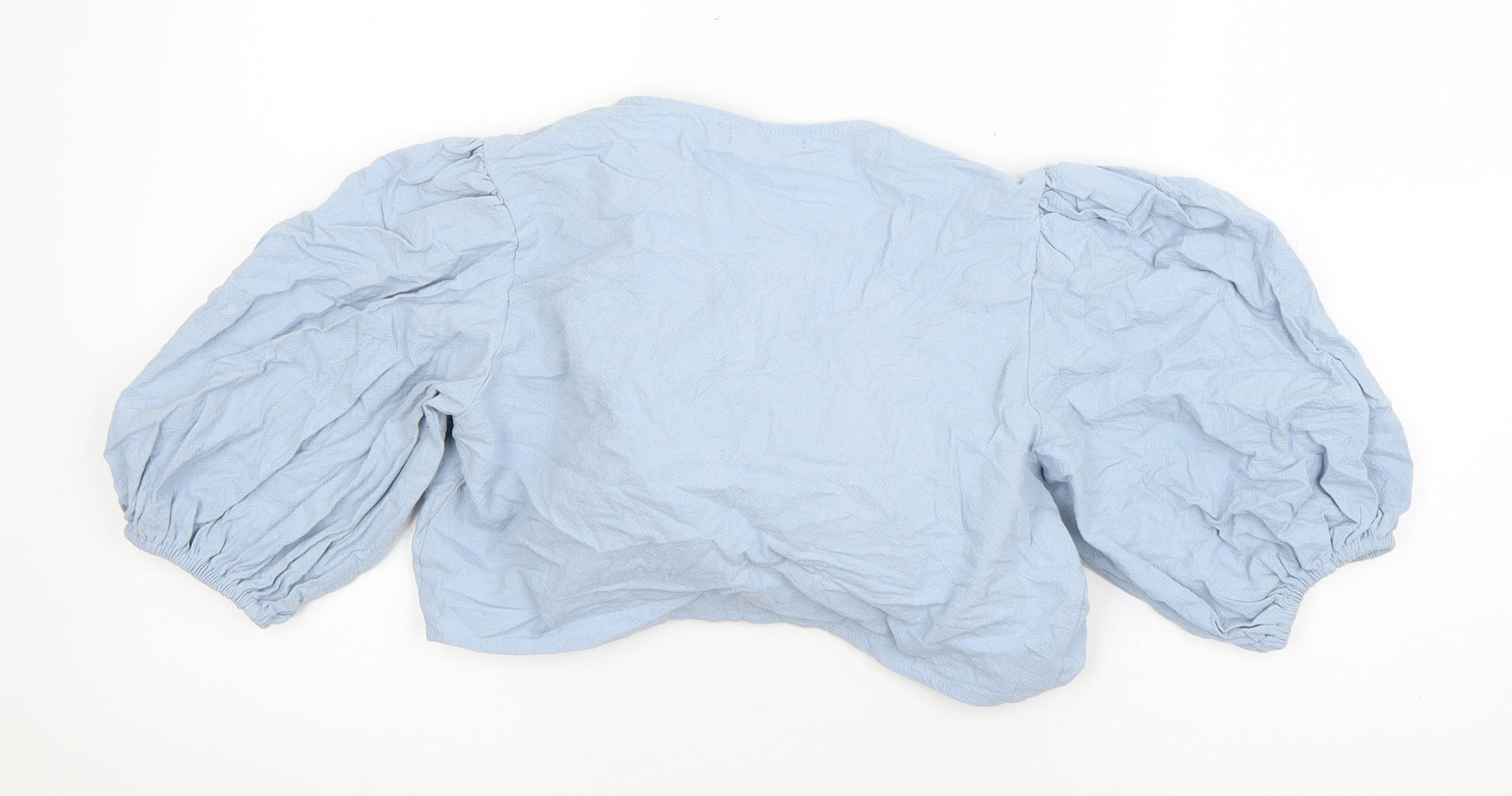 Nasty Gal Womens Blue Cotton Basic Blouse Size 4 V-Neck