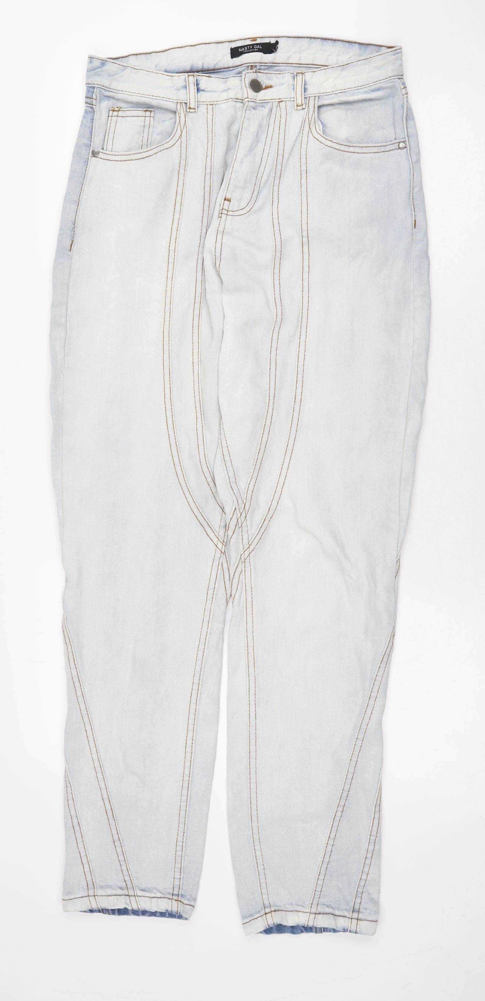 Nasty Gal Womens Blue Cotton Straight Jeans Size 10 L29 in Regular Zip - Seem Details