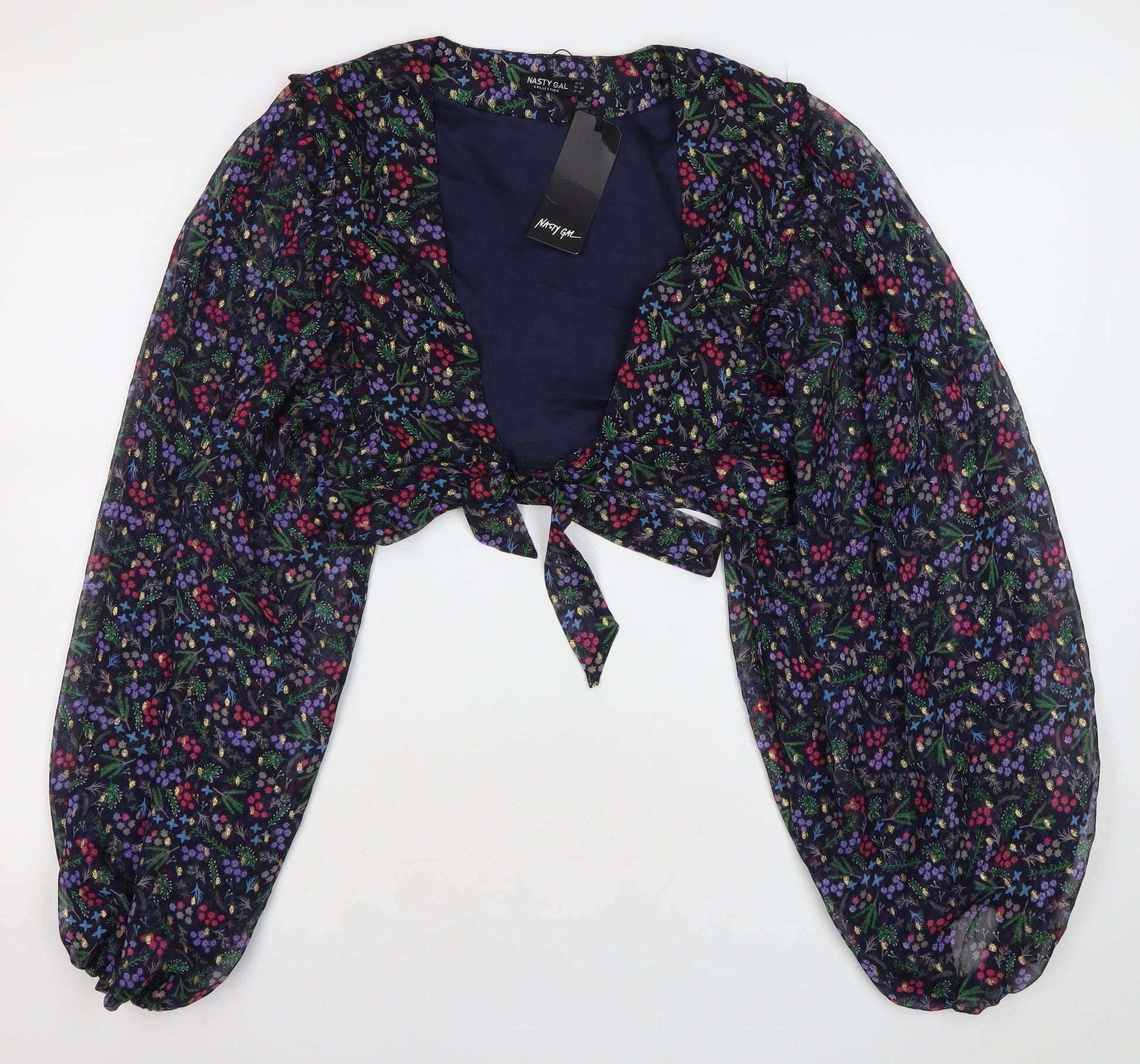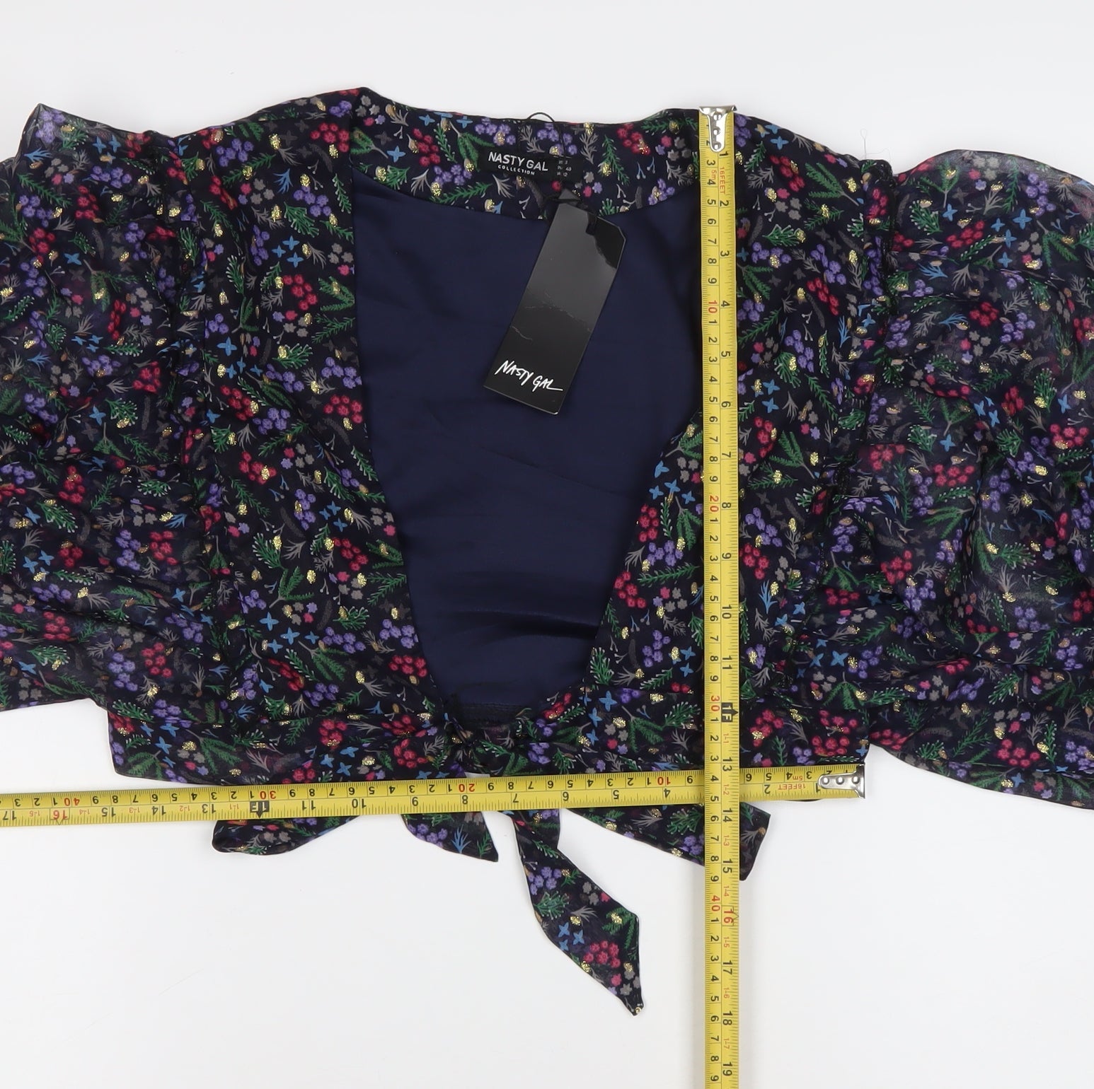 Nasty Gal Womens Floral Chiffon Cropped Blouse Top UK 12 Multicoloured