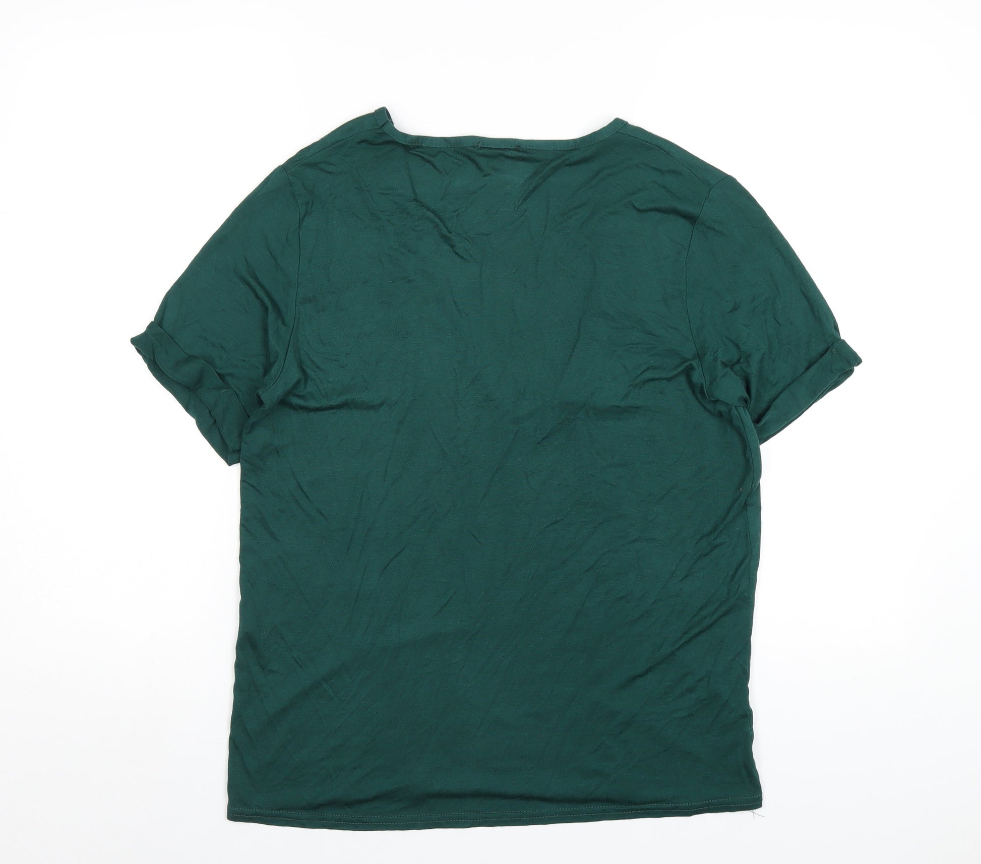 Nasty Gal Womens Green Viscose Basic T-Shirt Size M V-Neck