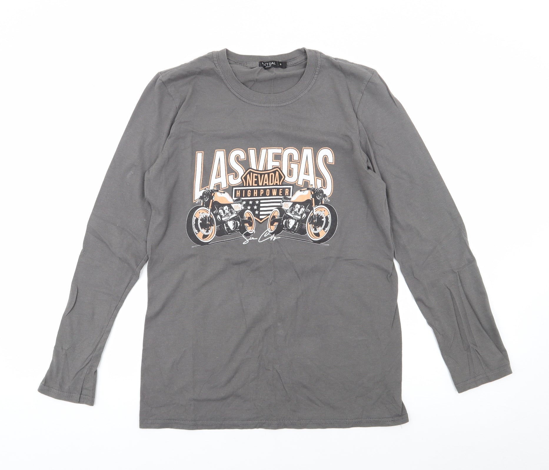 Nasty Gal Womens Grey Polyester Jersey T-Shirt Size S Crew Neck - Biker, Las Vegas
