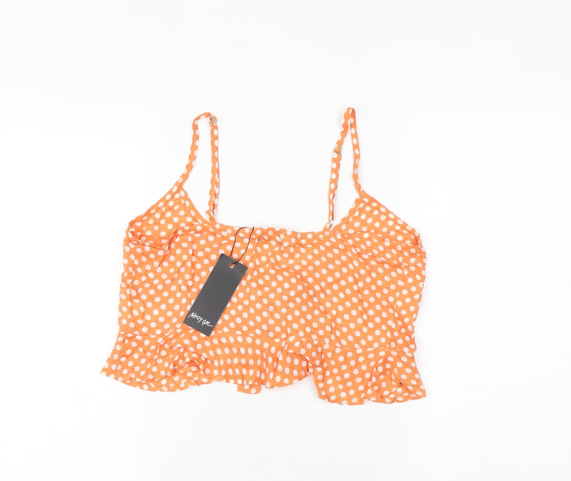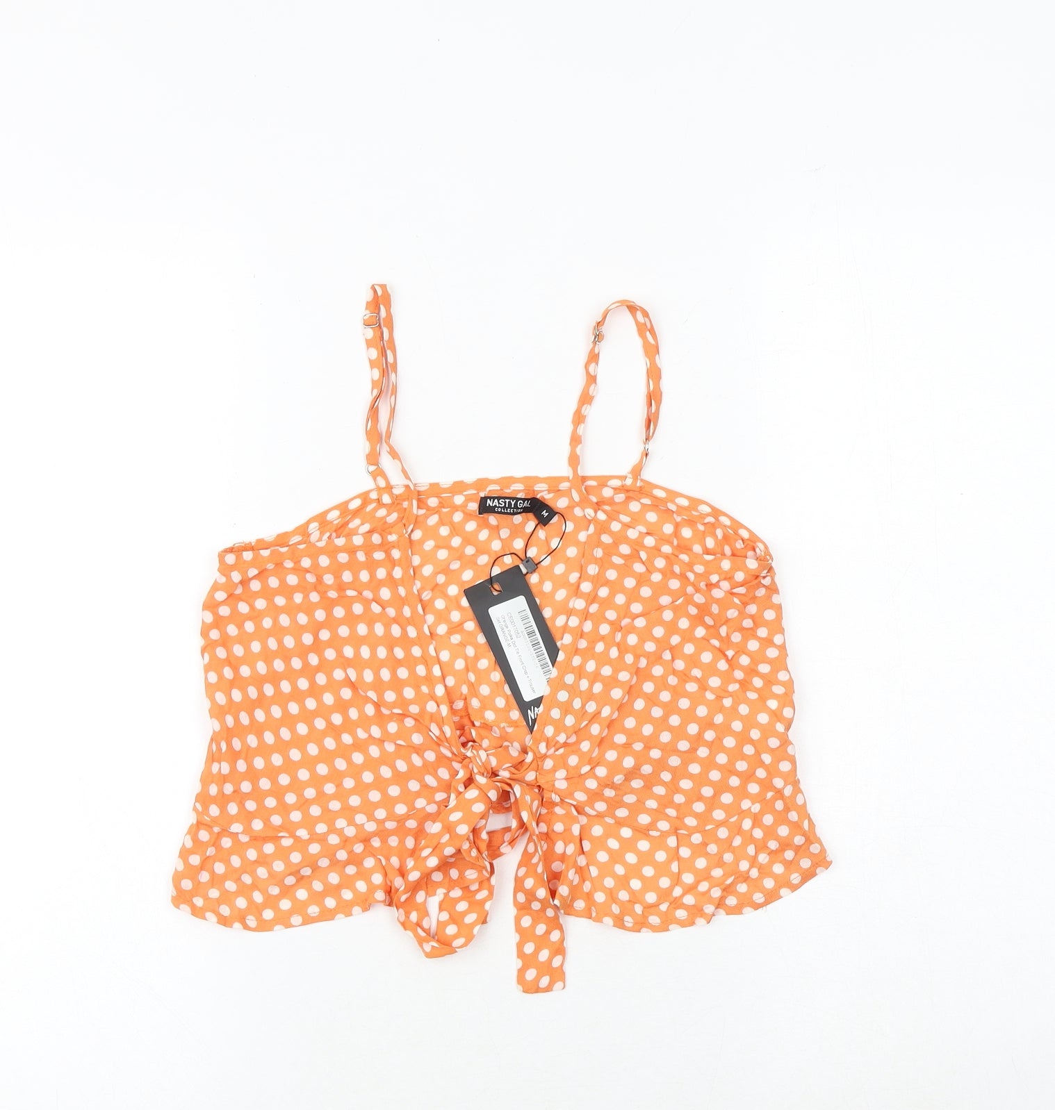 Nasty Gal Womens Orange Polka Dot Viscose Camisole Tank Size M V-Neck - Tie Front