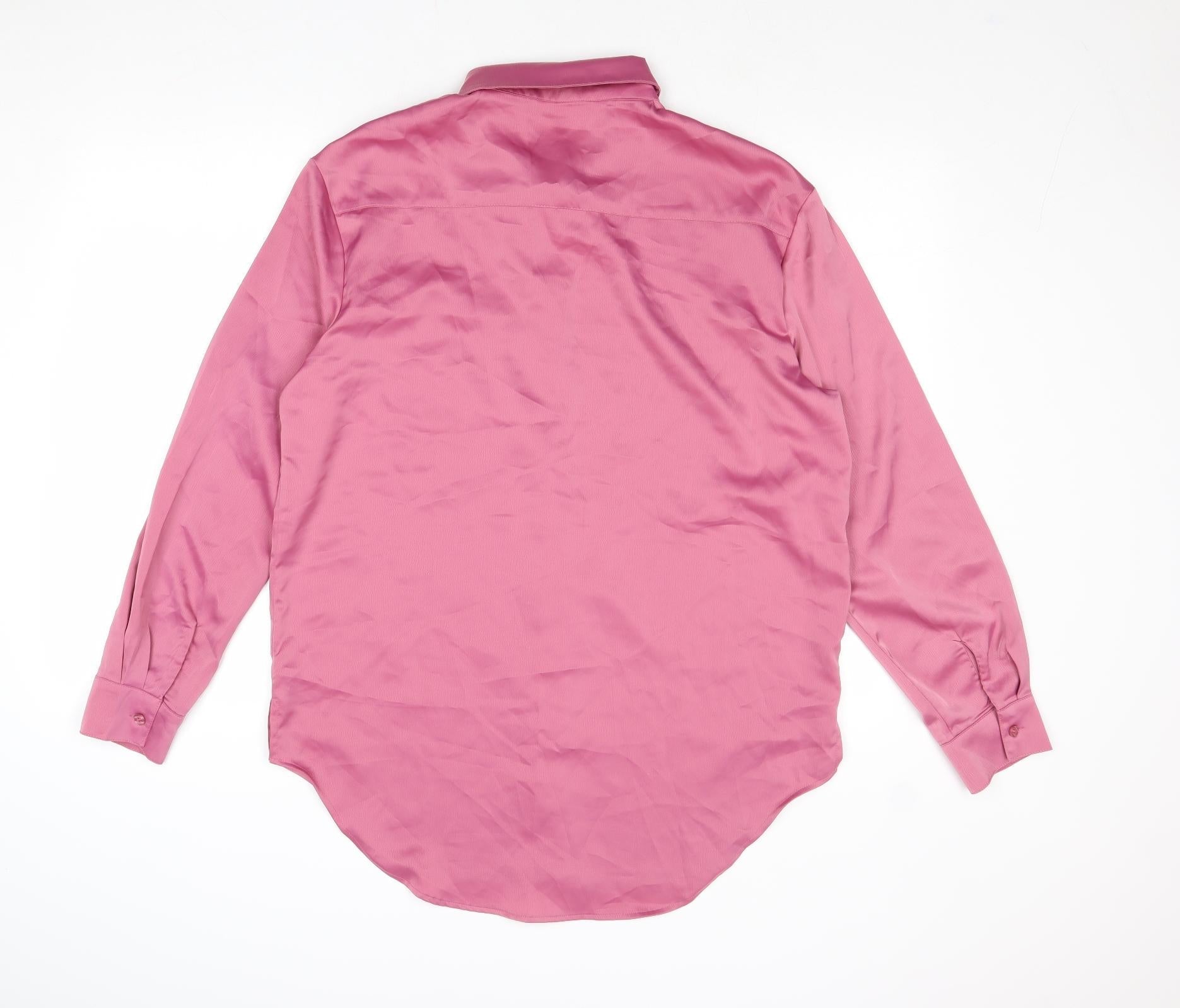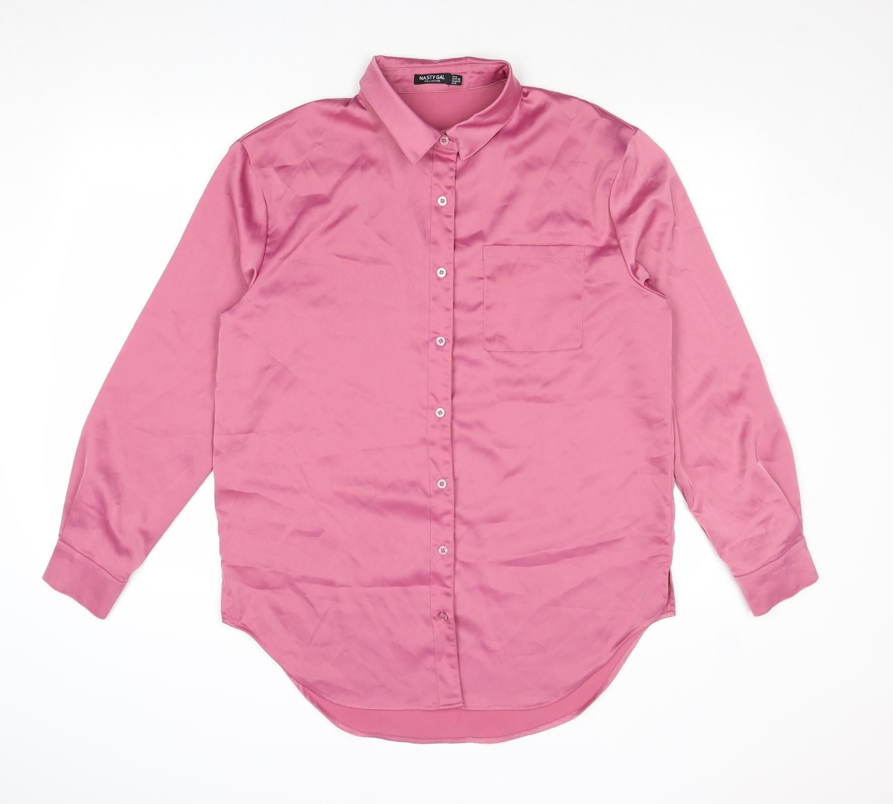 Nasty Gal Womens Pink Polyester Basic Button-Up Size 10 Collared