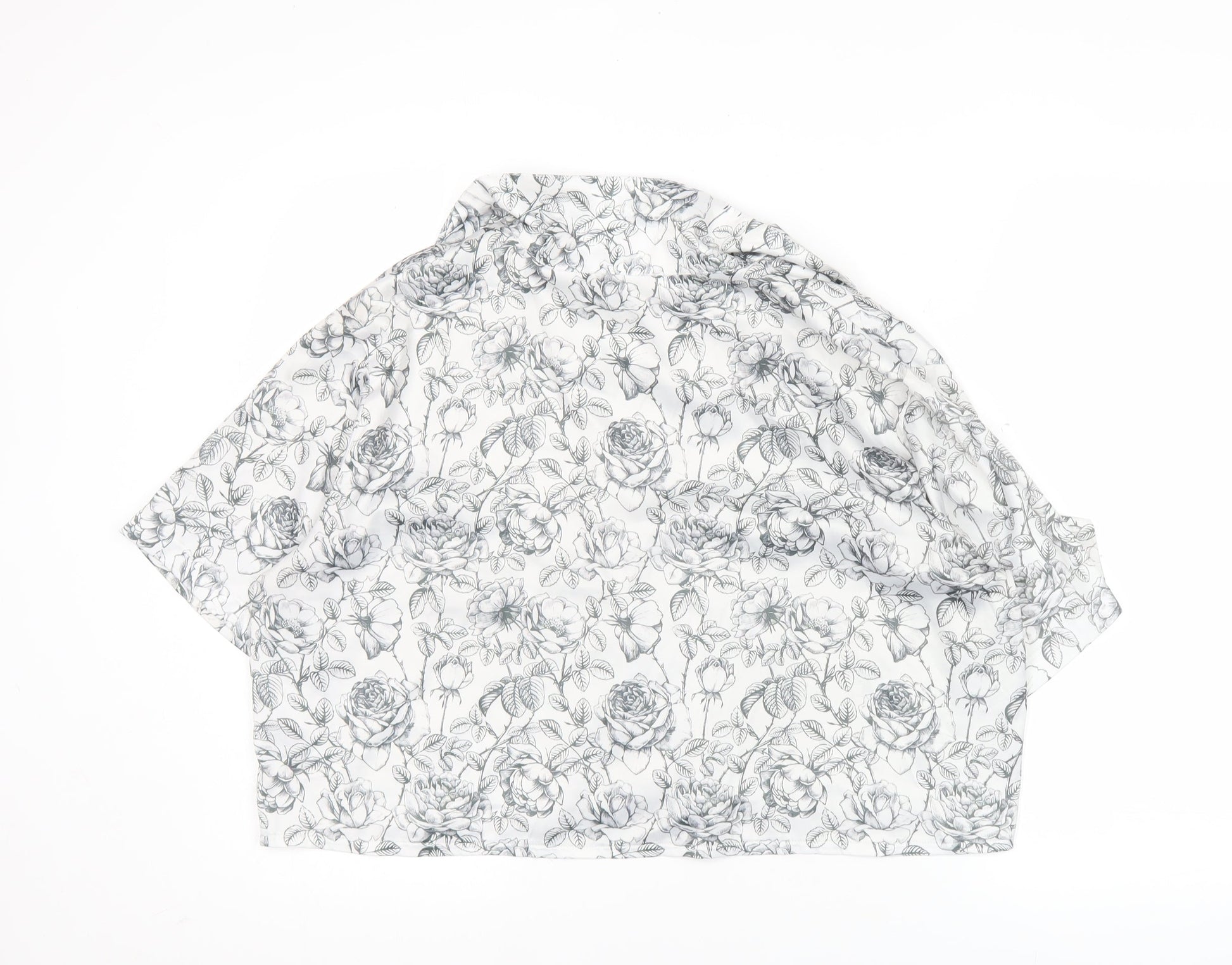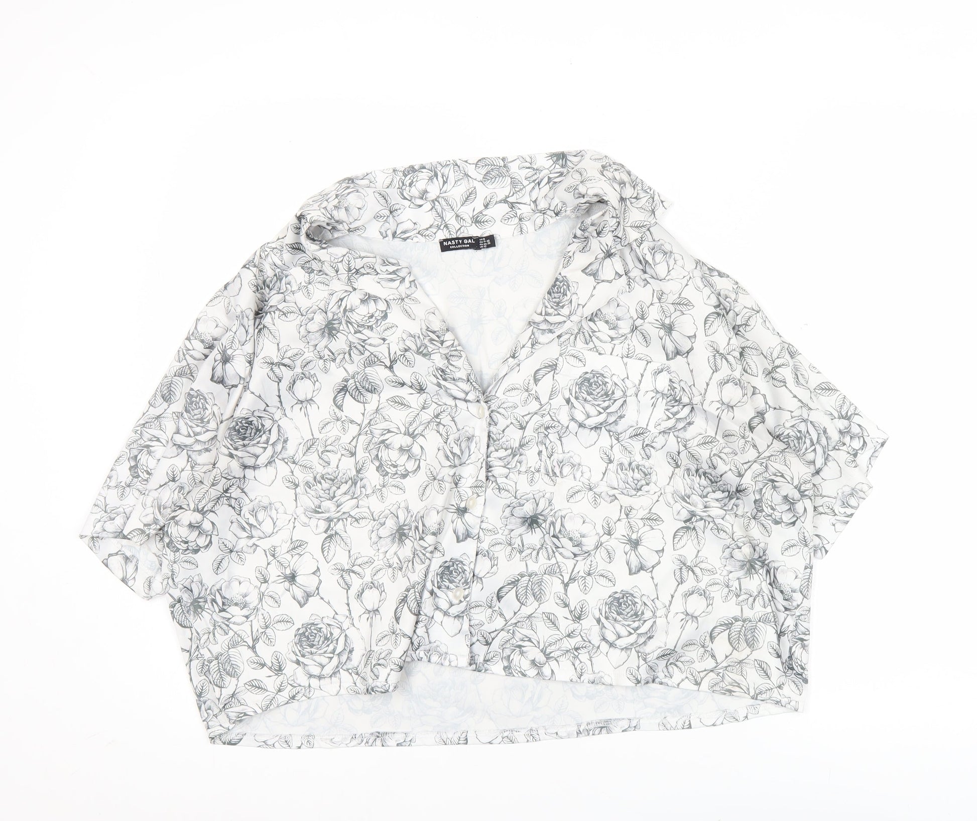 Nasty Gal Women's White Floral Cropped Button-Up Shirt Size 12