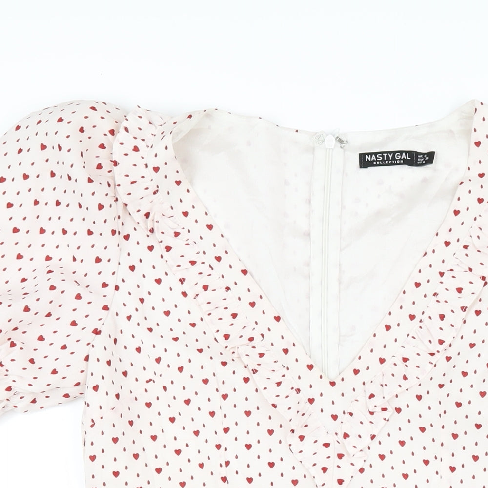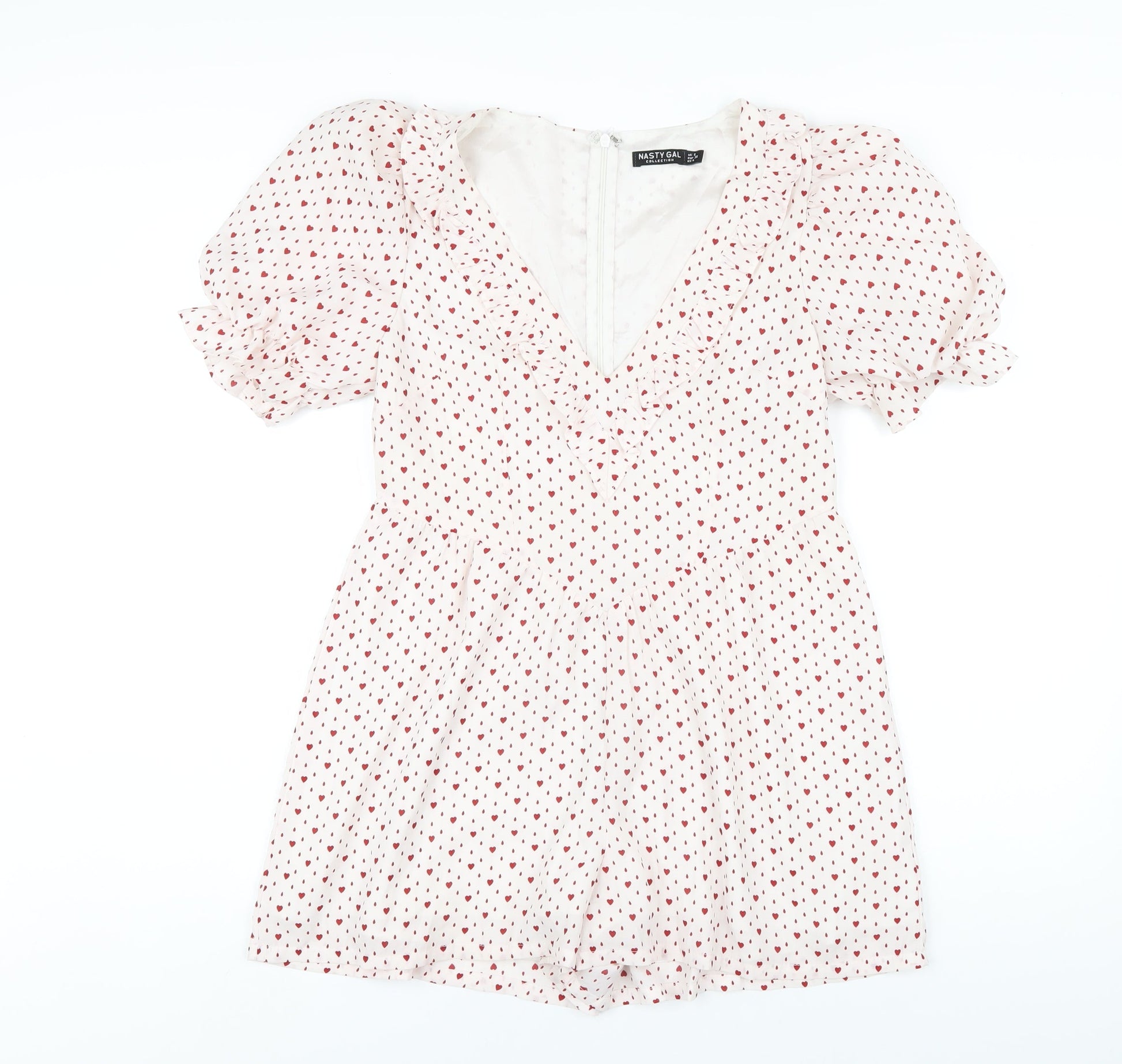 Nasty Gal Womens White Geometric Polyester Playsuit One-Piece Size 8 Zip