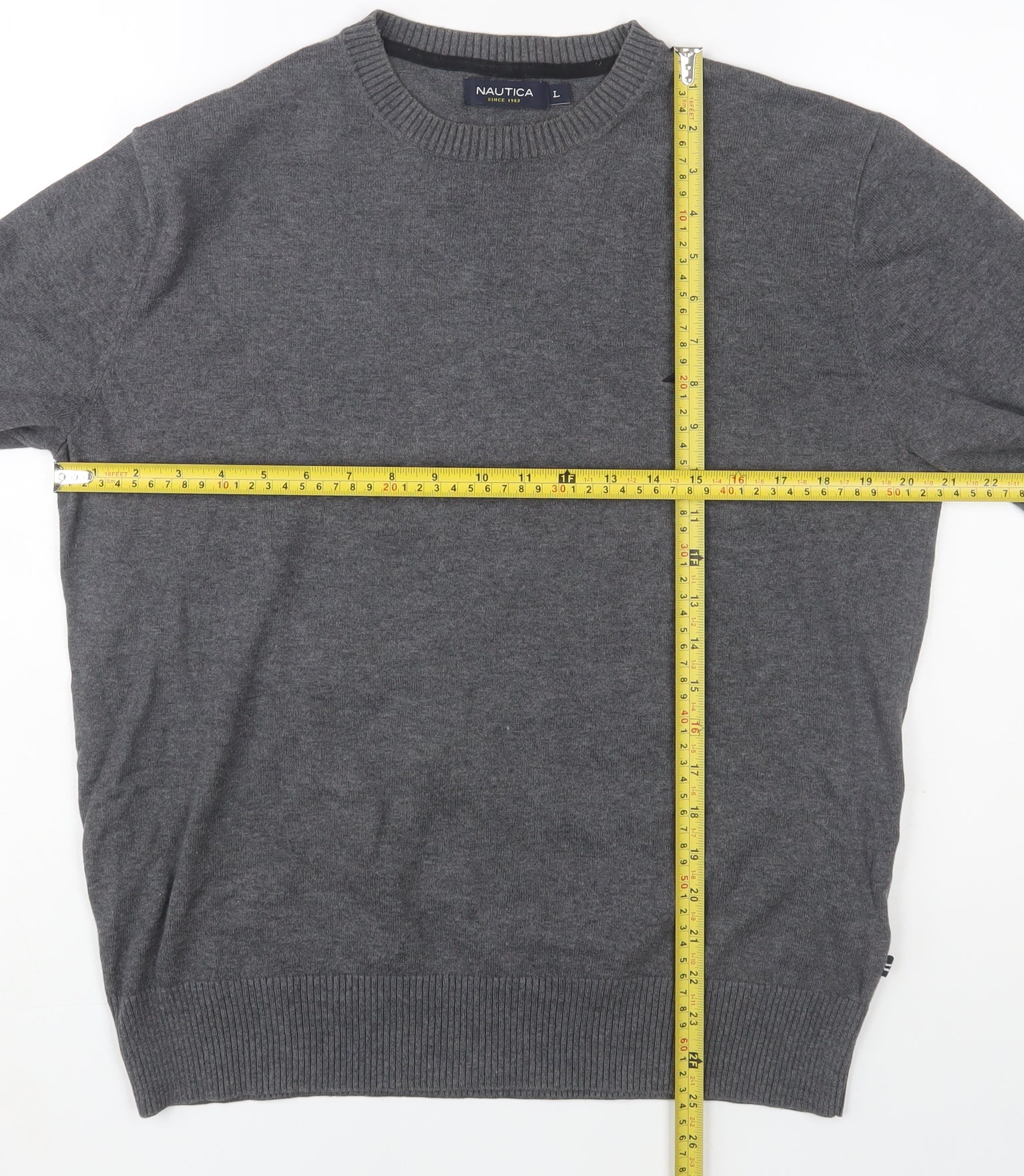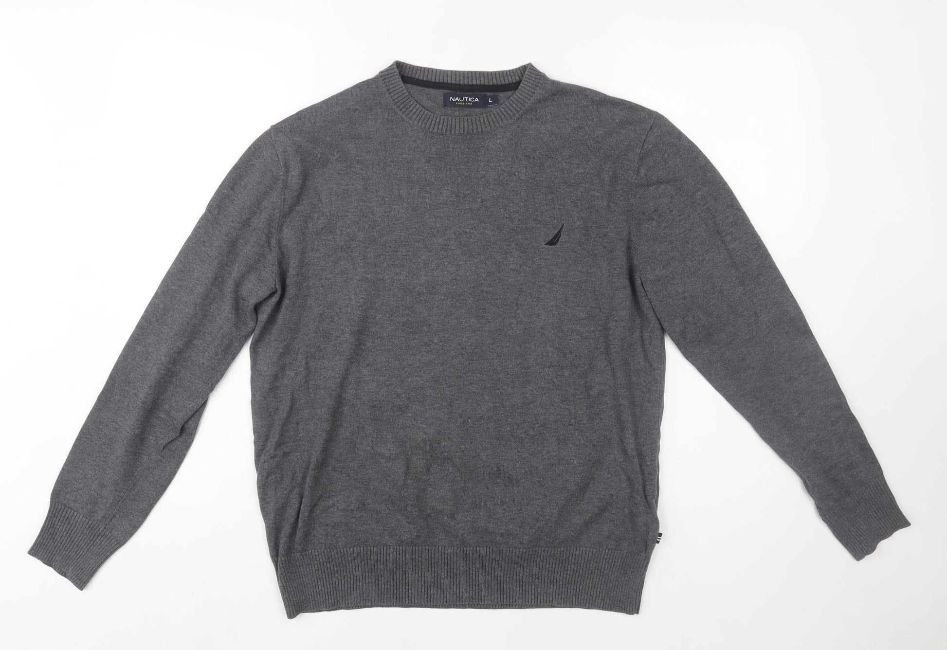 Nautica Men's Grey Cotton Crew Neck Pullover Jumper L