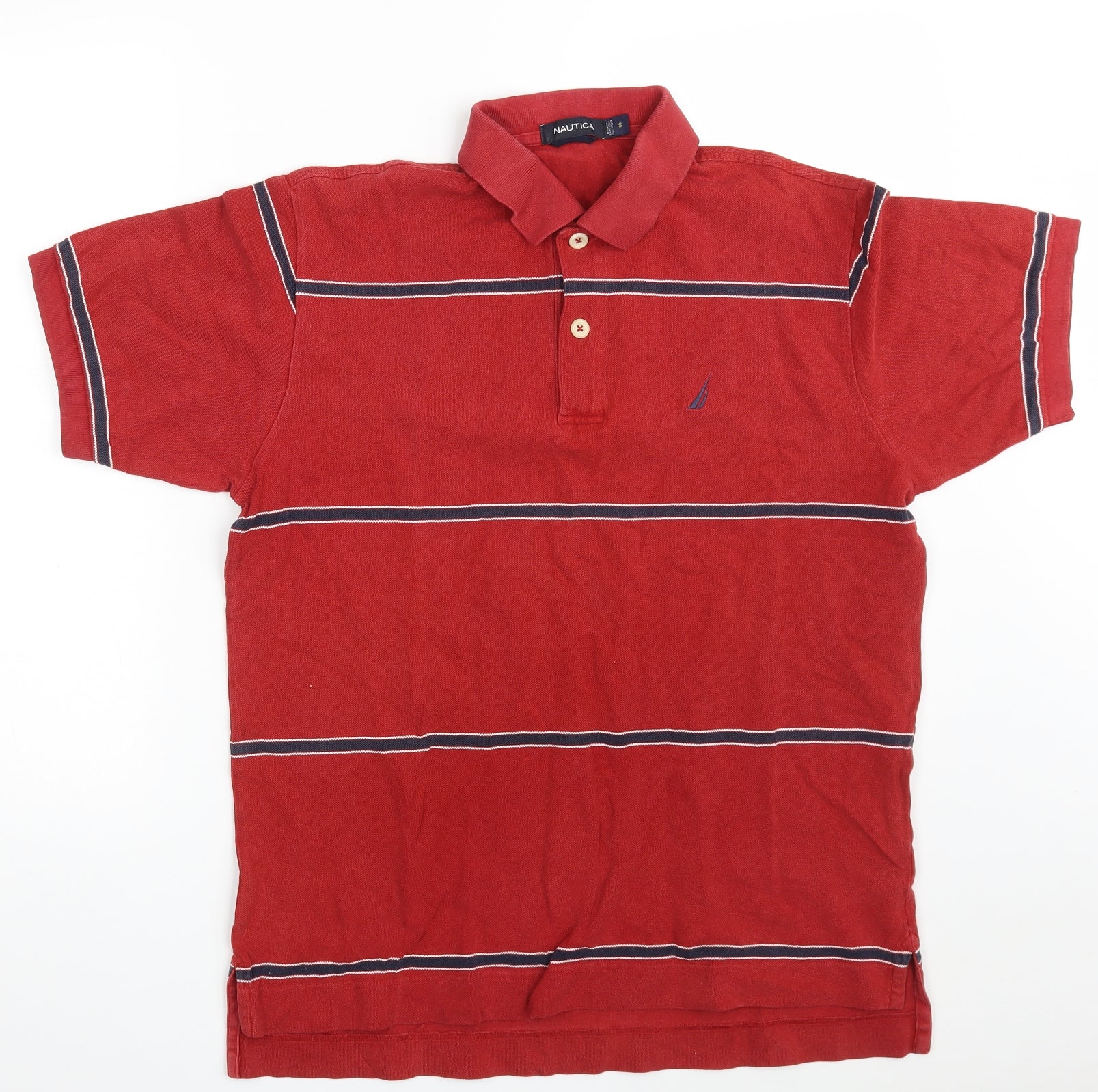 Nautica Mens Red Striped 100% Cotton Polo Size S Collared Button