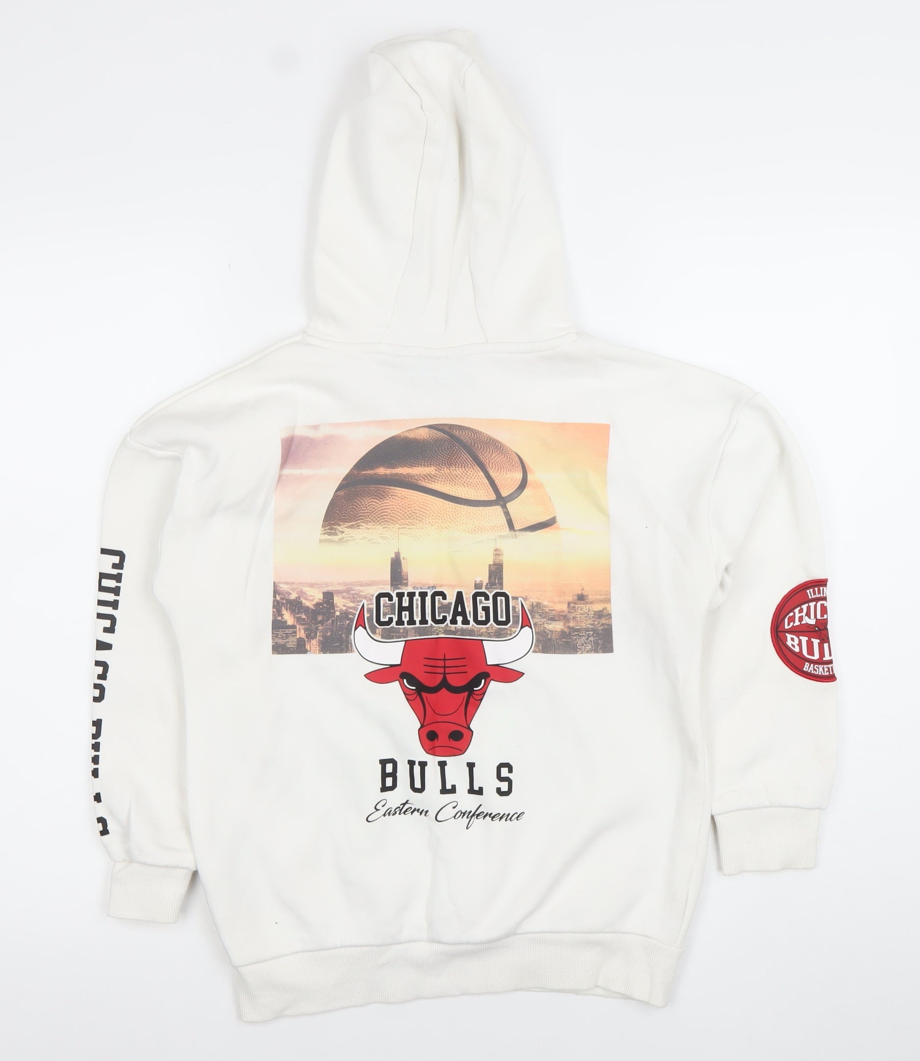 NBA Boys White Chicago Bulls Pullover Hoodie 9-10 Years Cotton Blend