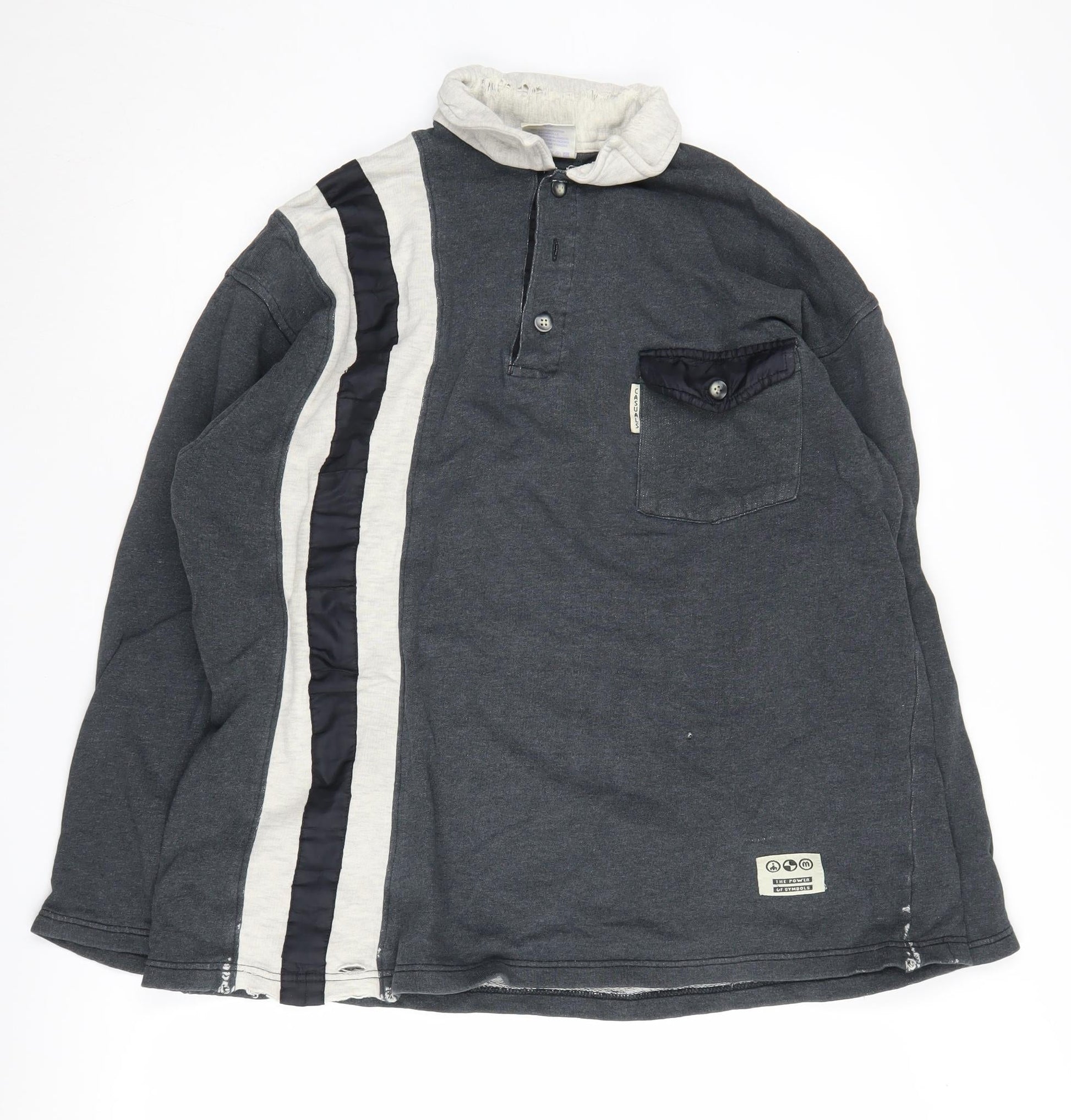 New Fast Men's Grey Long Sleeve Polo Shirt L
