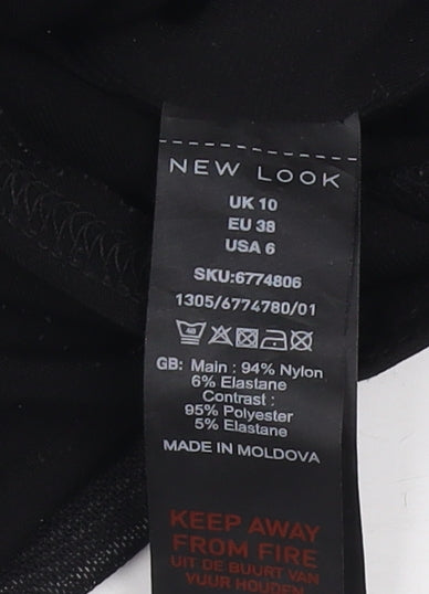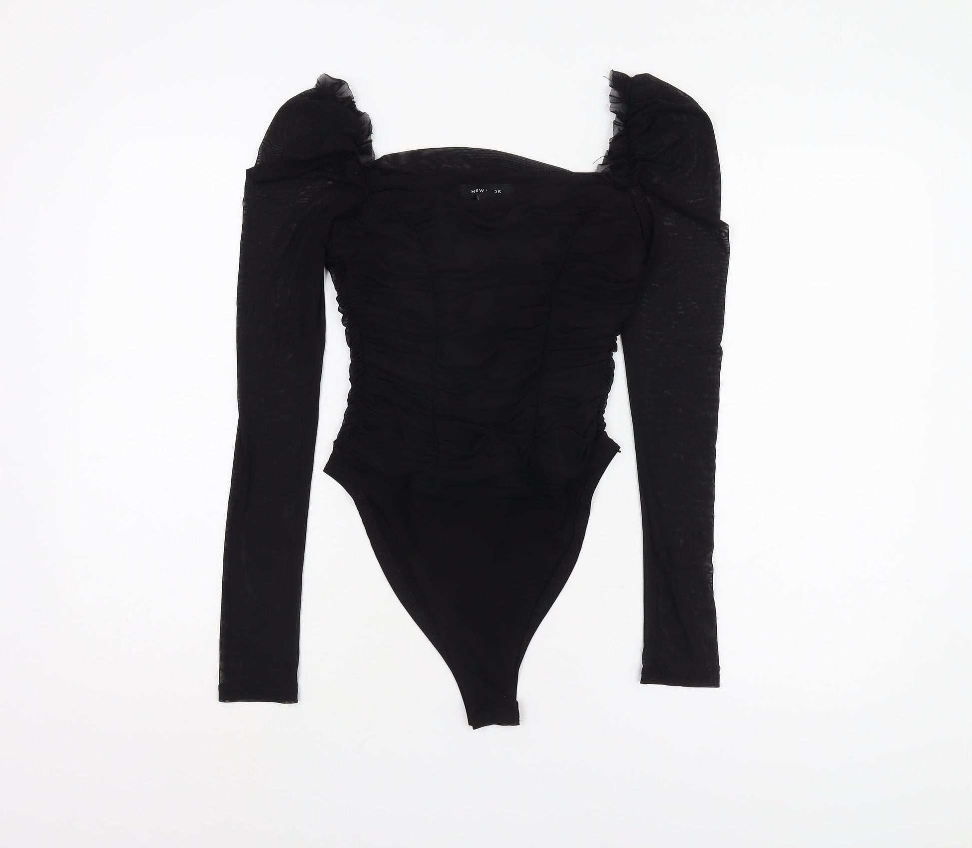New Look Black Puff Sleeve Bodysuit, Size 10 Women