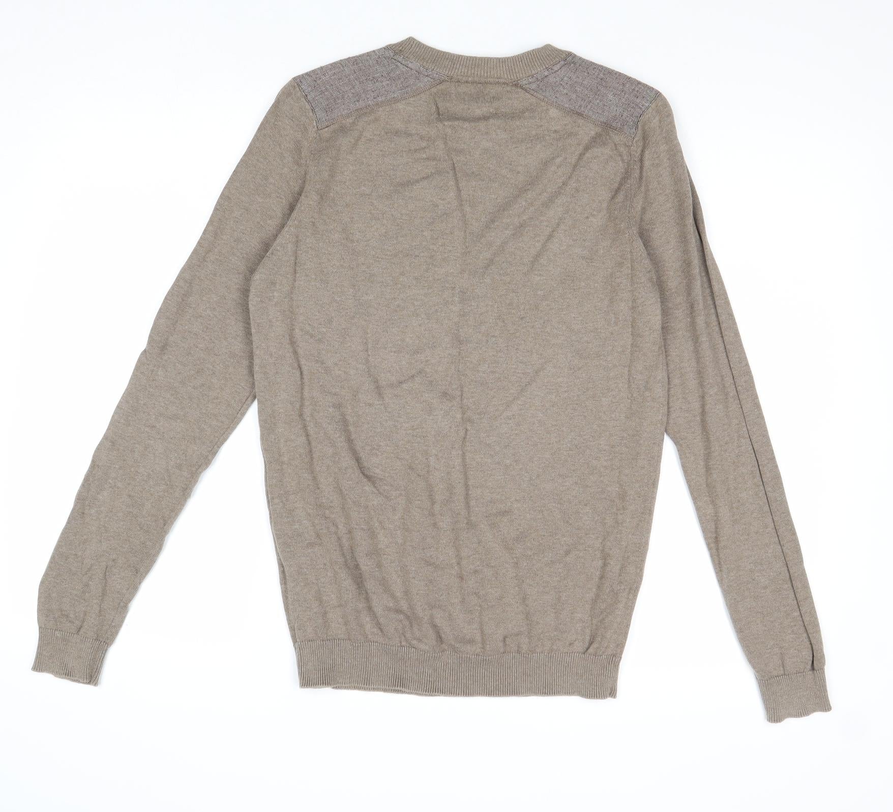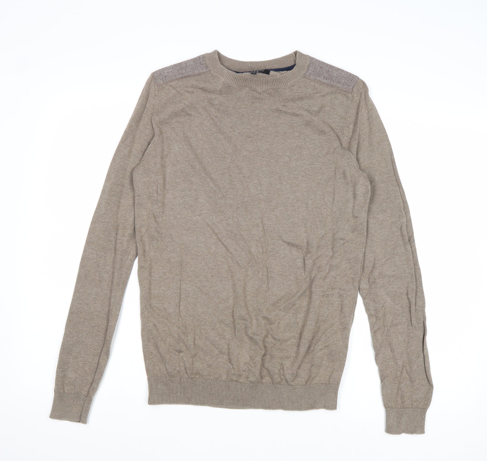 New Look Mens Beige Round Neck Cotton Pullover Jumper Size S Long Sleeve