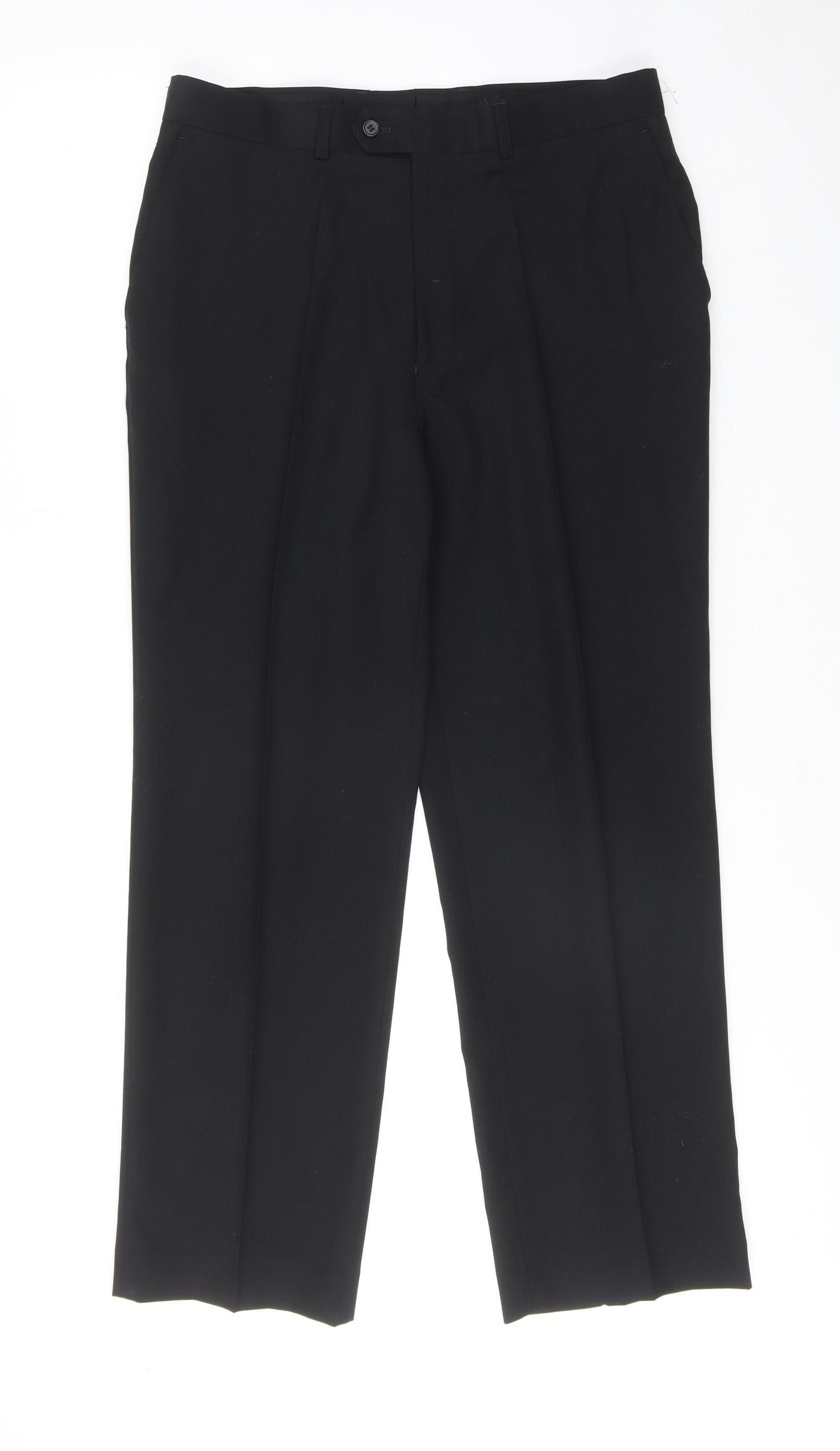 New Look Mens Black Polyester Dress Pants Trousers Size 34 in Regular Zip - Short Length